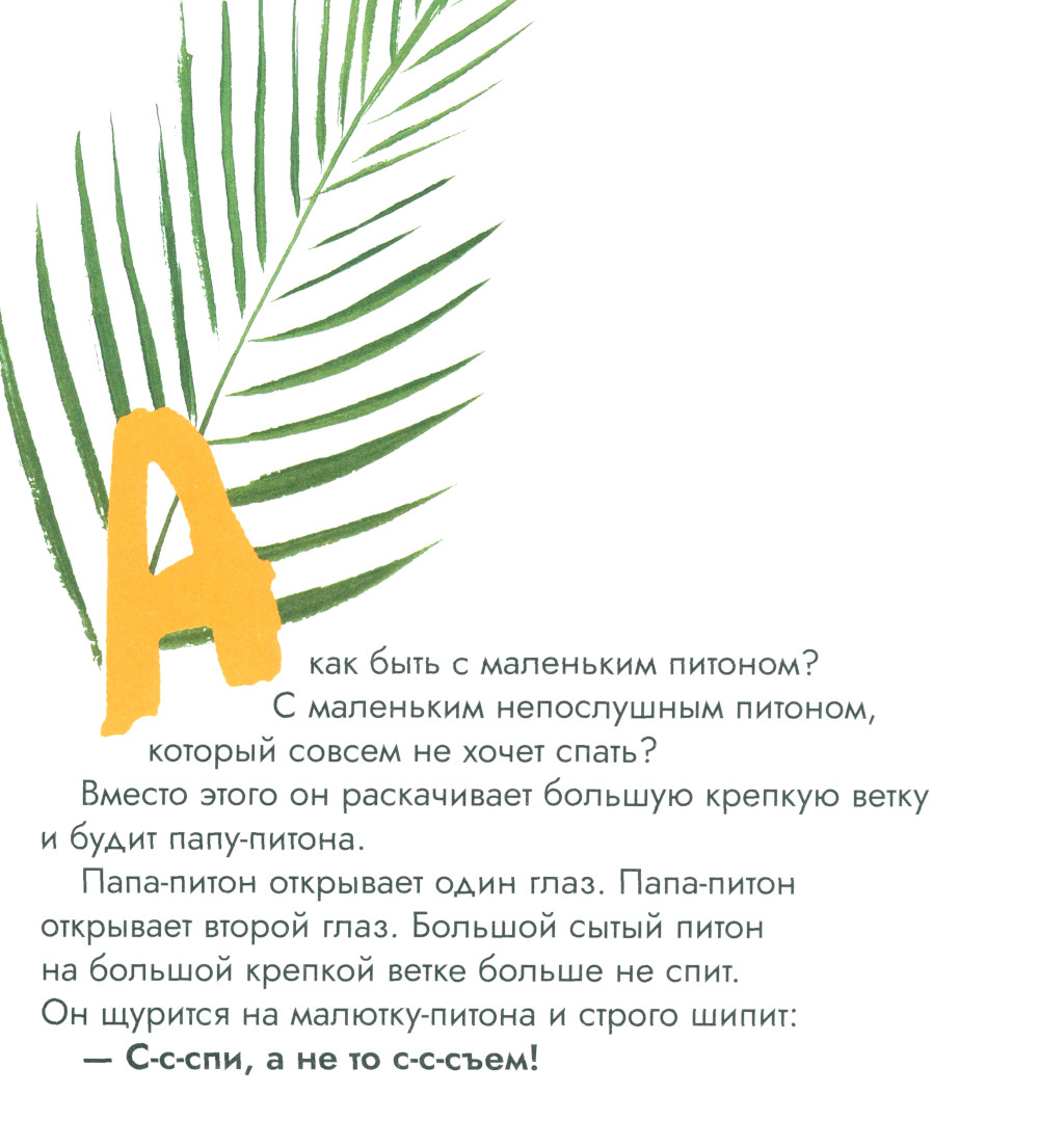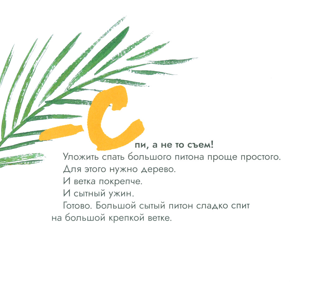 Все знают, как тяжело порой укладывать спать детёныша, что уж говорить о питоныше! В этой книжке вы узнаете, удастся ли папе-питону уложить спать детёныша-питоныша. *** Ольга Вербицкая - детский писатель, сценарист, редактор издательских проектов «Смешарики» и «Малышарики». Автор множества книг, отмеченных наградами. Художник этой книги Кристина Смердова также работала над иллюстрациями к другим сказкам Ольги Вербицкой «Кот и Трактор», «Хочу кита» и «Папа и я».| Издательство | Городец |