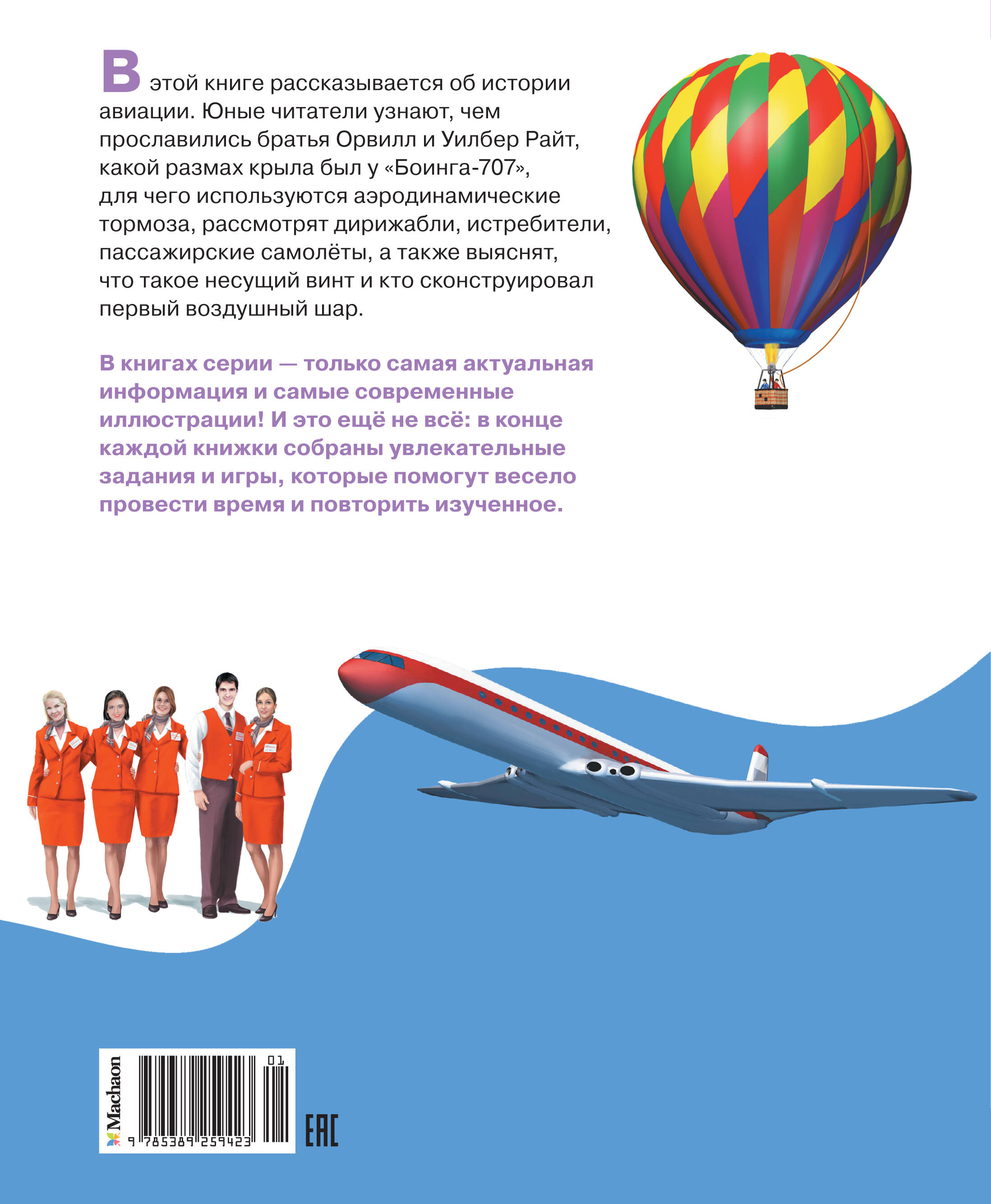В этой книге рассказывается об истории авиации. Юные читатели узнают, чем прославились братья Орвилл и Уилбер Райт, какой размах крыла был у "Боинга-707", для чего используются аэродинамические тормоза, рассмотрят дирижабли, истребители, пассажирские самолёты, а также выяснят, что такое несущий винт и кто сконструировал первый воздушный шар. В книгах серии - только самая актуальная информация и самые современные иллюстрации! И это ещё не всё: в конце каждой книжки собраны увлекательные задания и игры, которые помогут весело провести время и повторить изученное.| Издательство | Азбука-Аттикус Издат.группа ООО |