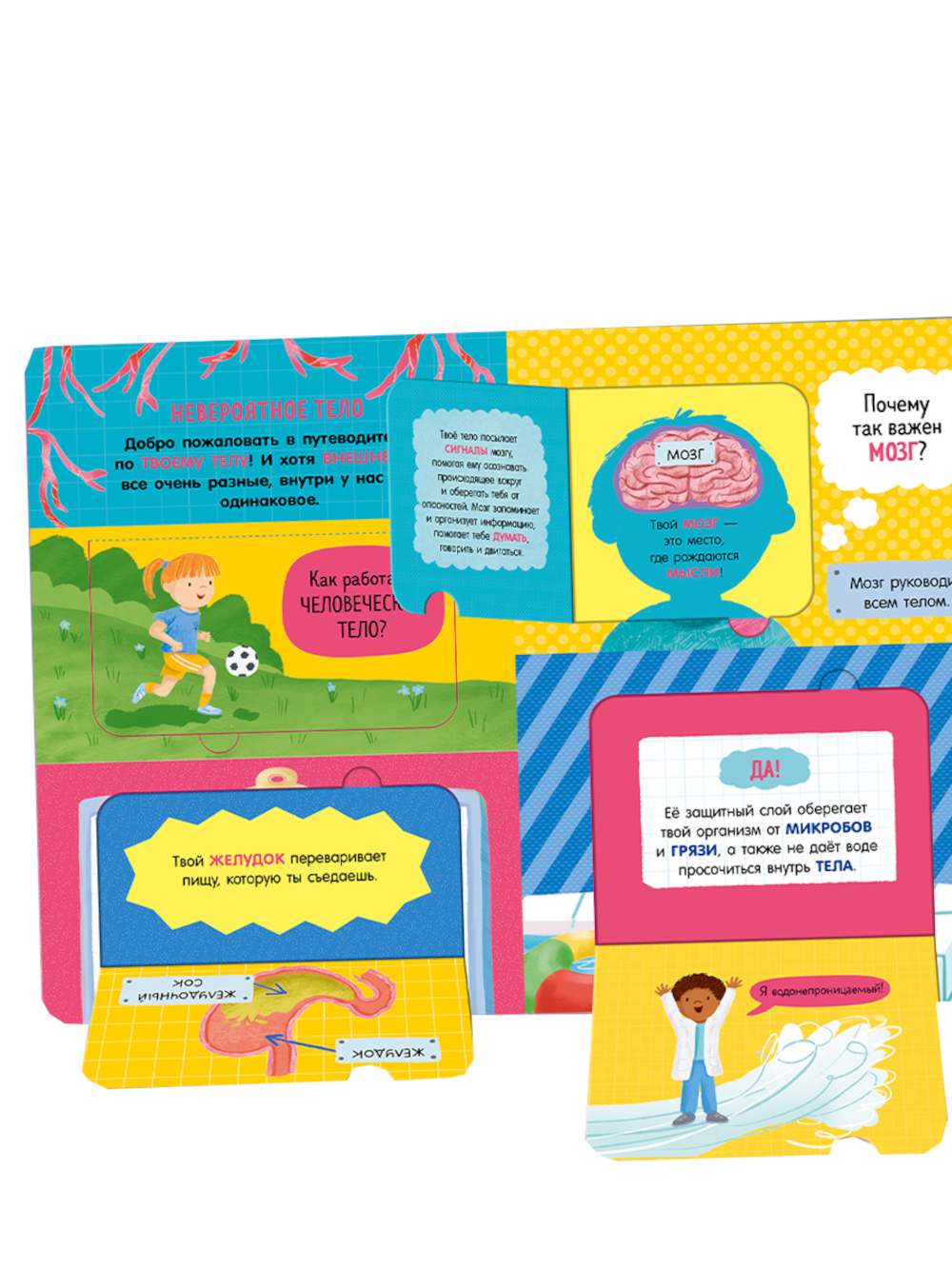 Какой орган самый большой? Сколько мышц в теле? Что случится, если сломать кость? Как организм перерабатывает пищу? Ответы на эти и другие вопросы - под открывающимися клапанами в этой книжке.