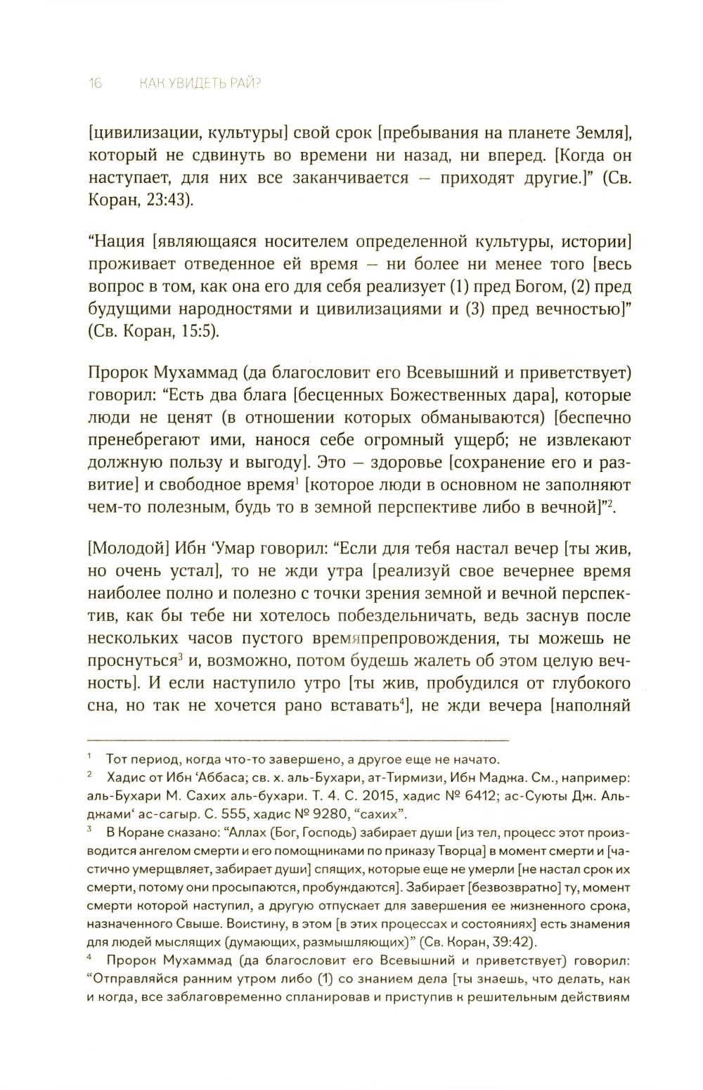 "Как увидеть Рай?" - это расширенный вариант книги "Все увидят Ад", которая была впервые издана в 2008 году. В настоящий момент автору очевидно, что на русскоязычном постсоветском пространстве стадия "детства" религиозного сознания, чей рост бурно ускорился сразу после развала атеистического Советского Союза, уже завершилась и началась новая стадия - "юношества", когда становится актуальным разумение и осмысление окружающего мира со всем его великолепием и разнообразием. А потому было решено преобразовать книгу, внести в нее совершенно новое и трансформировать, подняв тон книги и ее содержание на качественно иной уровень. Если мы не стоим на месте, а движемся вперед, жизнь постоянно открывает перед нами неизвестные грани бытия, новые возможности и новые знания для более полного и многостороннего анализа происходящего. Данная книга будет полезна любому читателю, вне зависимости от его национальной и религиозной принадлежности. Она несет в себе не мертвую теорию, а живительную практику. Она актуальна для любого из этапов духовного и интеллектуального становления личности; поможет задуматься над важным и нужным, наметить пути роста и саморазвития, а также - идти вперед с радостью и уверенностью в завтрашнем дне как в земной перспективе, так и в вечной. Шамиль Рифатович Аляутдинов родился в январе 1974 года в Москве. С 1991 года работает в системе ДУМ (Духовных управлений мусульман) РФ. С 1997 года по настоящее время является проповедником (имам-хатыбом) Московской Мемориальной мечети на Поклонной горе. Шамиль Аляутдинов - Председатель Совета улемов ДУМ РФ с 2007 года. Автор свыше 30 книг, среди которых первый на русском языке богословский перевод Корана; автор и руководитель популярного сайта umma.ru. Шамиль Аляутдинов - выпускник Международной исламской академии и факультета исламского права университета аль-Азхар (Египет). Годы учебы: с 1992 по 1998.| Издательство | Диля |
