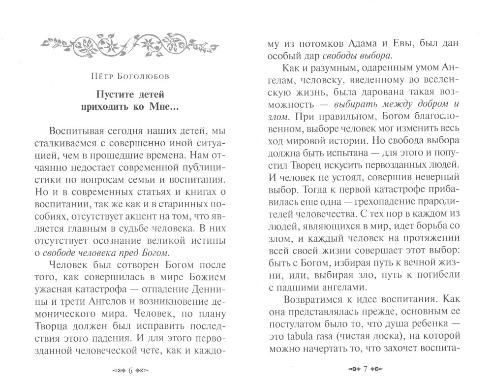 «Воспитание из всех дел самое святое», - говорил святитель Феофан Затворник. И самое ответственное из всех дел, добавим мы. Особенно в наше непростое, апостасийное время. Обобщая все сказанное в данной брошюре, можно предложить читателям три главных принципа воспитания современных детей, освященных родительской любовью, кратко выраженных формулой: ЦЕРКОВЬ, ХРАМ - ПРИРОДА, СПОРТ -ТРУД, УЧЕБА, ПОМОЩЬ СТАРШИМ. Таким образом, мы охватываем воспитанием и образованием душу, ум и волю ребенка. Особенностью данного издания является включение в него особых родительских молитв о счастье и благополучии детей и крестников.