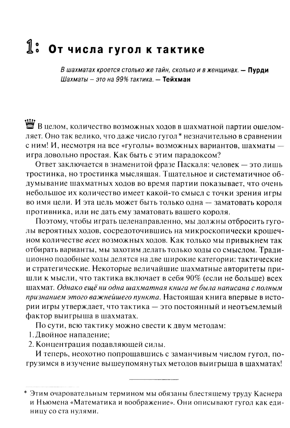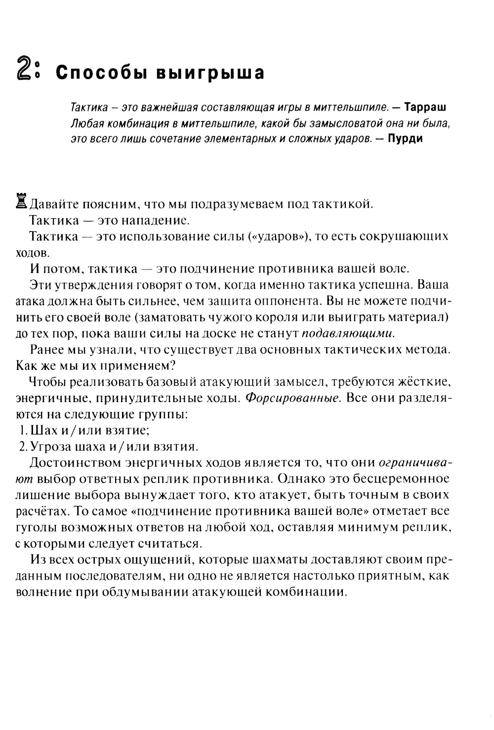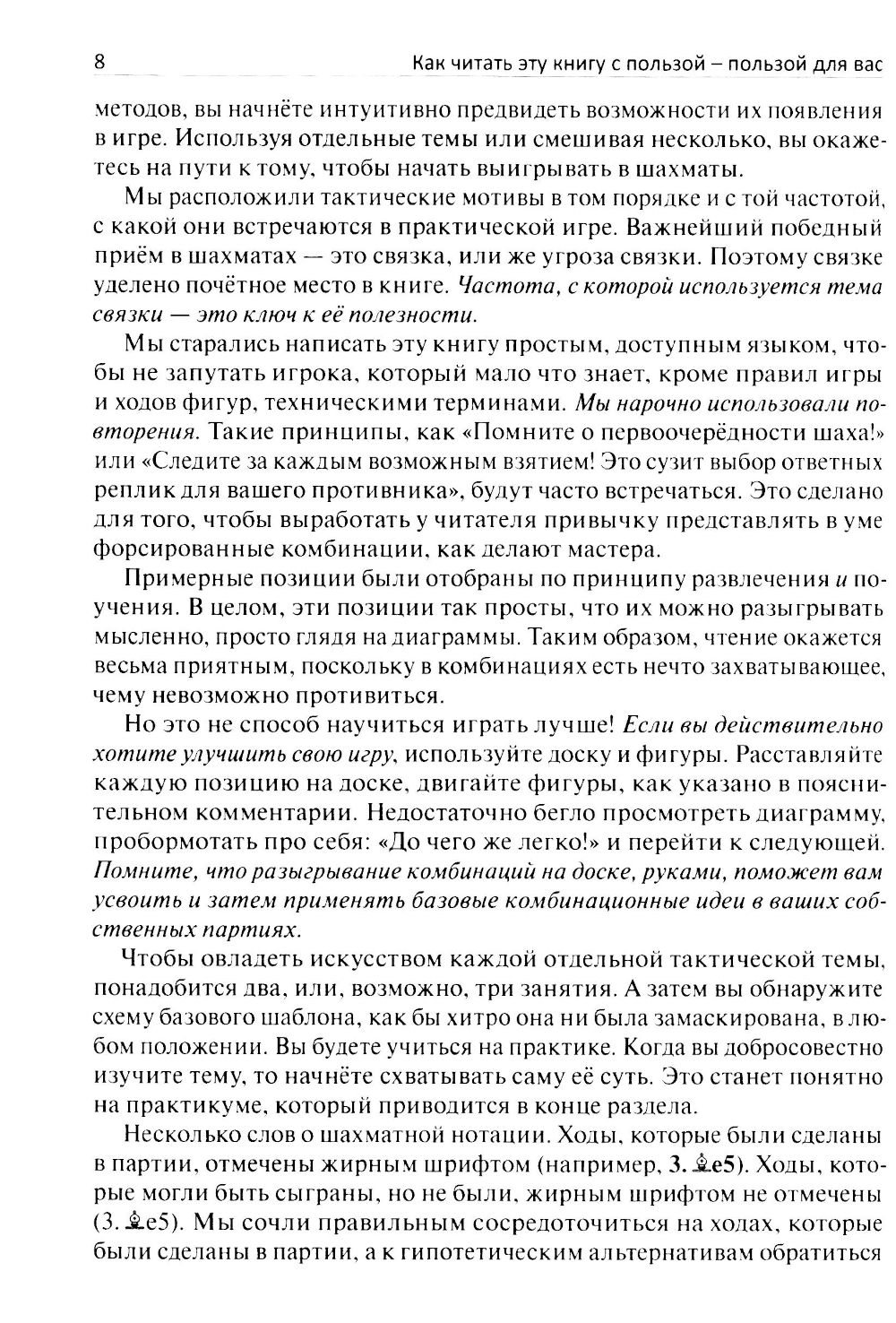 Ирвинг Чернев и Фред Рейнфелд - классики американской шахматной литературы, Фред даже введен в 1996 году в Зал шахматной славы в Сент-Луисе под 26-м номером. На их книгах училось не одно поколение англоязычных шахматистов, но в СССР их не переводили и не издавали. В наше время ситуация изменилась, и эти авторы сегодня известны многим российским читателям. И Чернева, и Рейнфелда отличает простота и прозрачность изложения, доходчивый язык. Всё, что они пишут, понятно буквально каждому шахматисту, хотя книги эти и полны тонкостей. Данная книга - учебник по тактике, содержащий громадное число специально подобранных позиций. Изучение этих примеров и методов анализа комбинаций позволяет лучше разбираться во взаимодействии фигур. Повторяясь на доске, выигрышные шаблоны приводят в порядок хаотичные шахматные мысли. Когда вы овладеете всеми видами шахматного «оружия», комбинирование станет вашей второй натурой. А комбинационная игра - это ключ к победе в шахматах Книга написана в первую очередь для широкого круга шахматистов, но полезной и интересной она будет и для продвинутых шахматистов.| Издательство | Изд.Калиниченко |