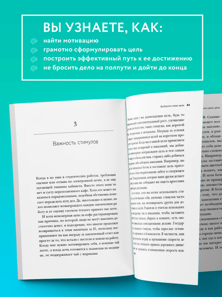 Очень часто мы ставим себе цели, но не достигаем их: от уборки в шкафу до исполнения заветной мечты. Мы откладываем дело в долгий ящик, хотя знаем, что приступить к задаче нужно уже сейчас. Нам хочется что-то изменить, но мы не знаем, где найти на это силы. Психолог и президент Общества изучения мотивации Айелет Фишбах точно знает, что все дело в том, как мы ставим цели и каким образом планируем их достичь. Автор этой книги раскрывает, как использовать научные открытия о мотивации в бизнесе и жизни. Проверенные стратегии помогут вам начать действовать здесь и сейчас: хотите ли вы достичь успехов в работе или учебе, или улучшить отношения с близкими людьми. Вы научитесь: - определять правильный момент, когда нужно сесть и сделать дело или устроить себе перерыв на отдых; - управлять своими желаниями, а не подчиняться им; - распределять силы, правильно оценивать успехи и не застревать на середине пути; - четко ставить приоритеты; - определять тип целей и подбирать соответствующий подход к планированию. Об авторе Айелет Фишбах - психолог, опубликовавшая более ста научных статей. Ее новаторское исследование мотивации было удостоено награды Общества экспериментальной социальной психологии. Научные открытия доктора наук Айелет Фишбах регулярно освещаются в известных СМИ, включая: New York Times, Financial Times, Wall Street Journal и CNN. «Если бы мы могли "просто сделать это", нам бы не понадобился такой совет. Но почему мы не можем? И если не можем просто сделать это, то что должны сделать вместо этого? В этой умной, восхитительной и важной книге ведущий мировой эксперт в области науки о мотивации отвечает на все вопросы. Чего же вы ждете? Просто прочитайте это!» - Дэниел Гилберт, автор «Спотыкаясь о счастье» Яркое оформление в формате покета. Вы сможете использовать клапан обложки как закладку.| Издательство | ООО "Издательство "Эксмо" |