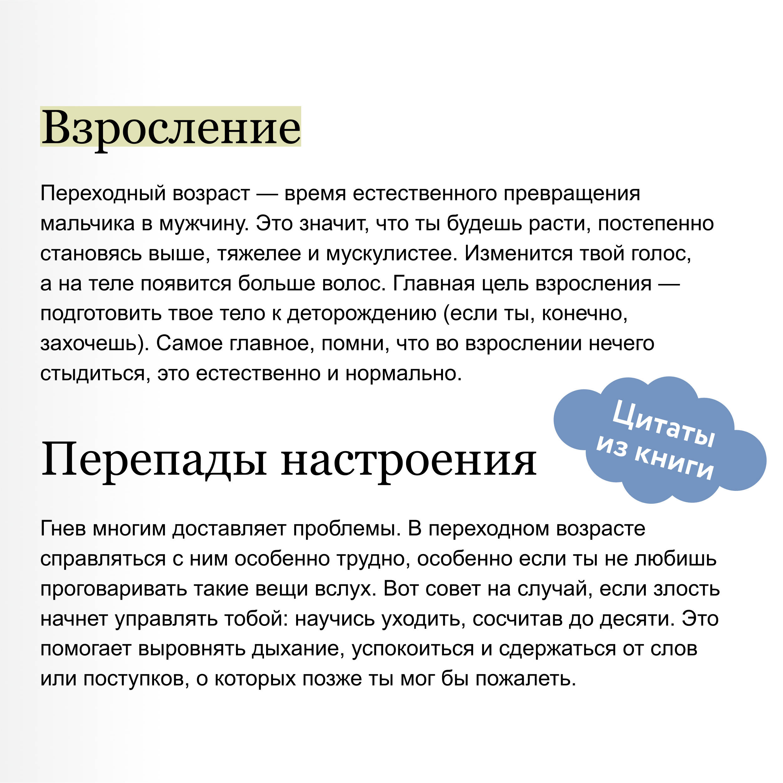 Книга откровенно и тактично расскажет мальчикам-подросткам, как будет меняться их тело и настроение в период взросления, почему меняется голос, как правильно бриться, зачем нужен секс.| Издательство | Манн, Иванов и Фербер |