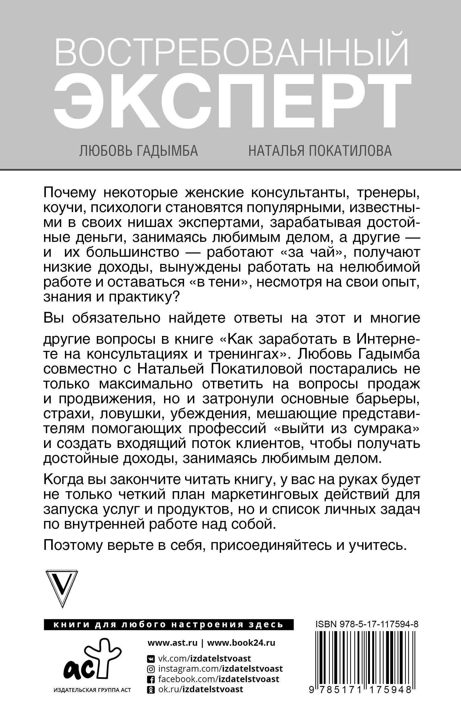 Книга для женских экспертов, тренеров, коучей, психологов Авторы объясняют четкую стратегию продвижения по шагам: с чего начать, как создавать продукты, как упаковать себя дорого, как упаковать свои продукты дорого, как сформировать на них спрос, где и как найти клиентов, как сделать их "своими", как зарабатывать на своих знаниях и опыте достойные доходы.| Издательство | ИЗДАТЕЛЬСТВО "АСТ" |