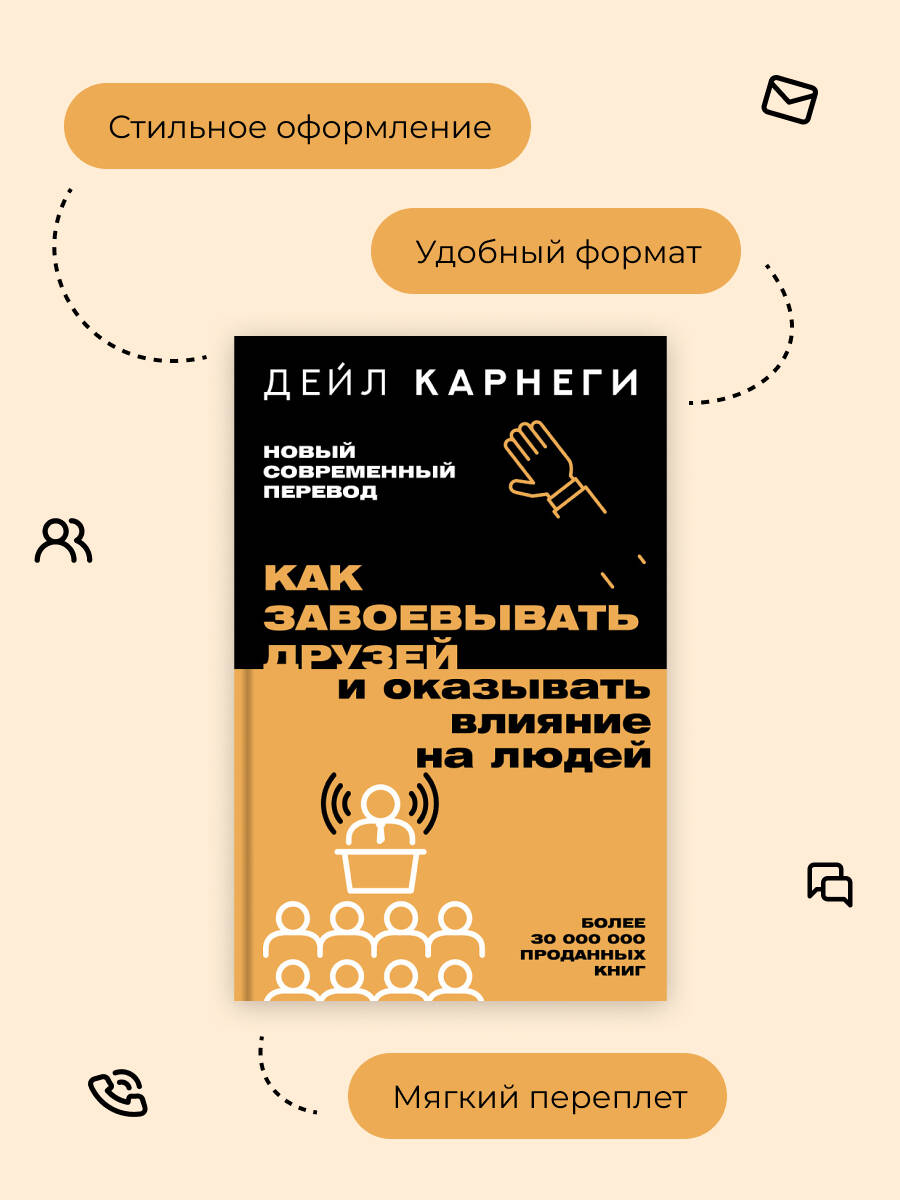 Руководство по эффективной коммуникации, изданное миллионными тиражами и переведенное почти на все мировые языки. Классика популярной психологии и настольная книга успешных людей. Перед вами - обновленное издание бестселлера в серии «Легенда нон-фикшен. Полное издание». Книга выполнена в удобной мягкой обложке с клапанами, на которых вынесены самые важные цитаты из книги. А внутри - удобные широкие поля для заметок и страницы для самостоятельной работы с текстом «Как я применяю принципы из этой книги в жизни». Современный полный перевод книги включает уникальный материал, восстановленный из оригинального текста 1936 года. Все мудрые советы от Дейла Карнеги переданы без искажений - так, как их сформулировал сам автор. Всемирно известный психолог, писатель, оратор и педагог Дейл Карнеги создал эту книгу для тех, кто хочет уверенно достигать своих целей в любом деле. Вы сможете: - стать искусным оратором и интересным собеседником; - легко завоевывать доверие коллег и партнеров; - прокачать деловые качества; - стать увереннее в себе на публике; - поддерживать ресурсные отношения со всеми людьми и получать от них желаемое. Соберите свою коллекцию бестселлеров по саморазвитию и мотивации!| Издательство | Издательство "АСТ" |