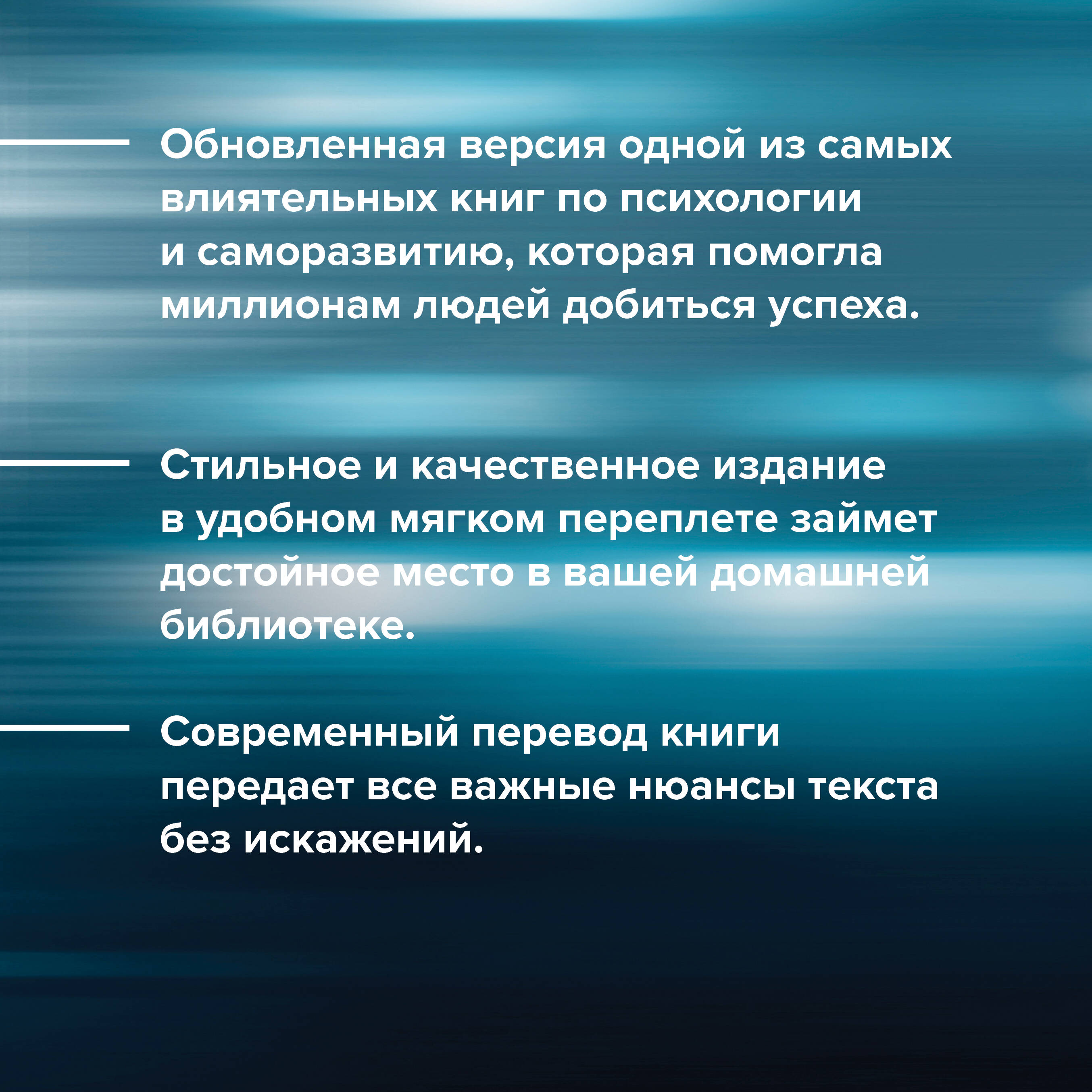Обновленный впервые за более чем сорок лет вневременной бестселлер Дейла Карнеги - классика, которая улучшила и изменила личную и профессиональную жизнь миллионов людей. Это новое издание самой влиятельной книги по самосовершенствованию, с бесценным материалом, восстановленным из оригинального текста 1936 года. Одно из самых известных мотивационных руководств в истории, проданное десятками миллионов экземпляров, переведенное почти на все известные письменные языки, помогло бесчисленному множеству людей добиться успеха. "Как завоевывать друзей и оказывать влияние на людей" научит вас, как: • эффективно общаться; • понравиться людям; • повысить свою способность добиваться результатов; • заставить других увидеть и принять вашу сторону в конфликте; • стать более эффективным руководителем; • успешно ориентироваться практически в любой социальной ситуации • и многому другому. Надежные, проверенные опытом и временем советы Карнеги остаются актуальными для современного читателя, поскольку автор обращается к вечным вопросам об искусстве ладить с людьми. Этот бестселлер в новом, современном, полном переводе передает важнейшие жизненные уроки посредством увлекательного повествования, показывая читателям, как стать теми, кем они хотят быть.| Издательство | ИЗДАТЕЛЬСТВО "АСТ" |
