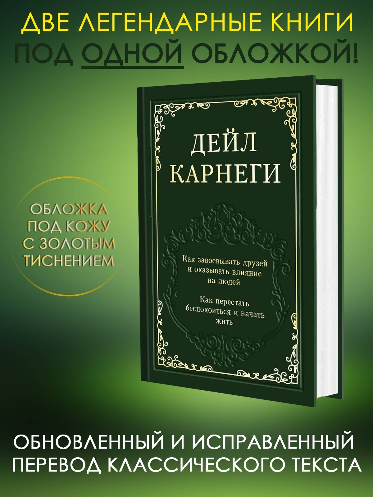 Классика, которая изменила и улучшила личную и профессиональную жизнь миллионов людей. Великолепное подарочное издание в дорогом оформлении под кожу с золотым тиснением и блинтом для ценителей хороших книг! В него вошли два обновленных впервые за более чем сорок лет вневременных бестселлера Дейла Карнеги: "Как завоевывать друзей и оказывать влияние на людей" и "Как перестать беспокоиться и начать жить". Большие поля для заметок помогут не потерять нужную информацию и получить от чтения максимум пользы. А новый, современный, полный перевод передаст важнейшие жизненные уроки Карнеги без искажения - так, как их сформулировал сам автор. Это одни из самых известных мотивационных руководств в истории, проданные десятками миллионов экземпляров, переведенные почти на все известные письменные языки. Из этих книг вы узнаете, как: • эффективно общаться; • вытеснить беспокойство из души и жизни; • понравиться людям; • находить выход из любой ситуации; • спокойно реагировать на критику; • повысить свою способность добиваться результатов; • заставить других увидеть и принять вашу сторону в конфликте; • преодолеть усталость и быть в тонусе; • стать более эффективным руководителем; • перестать переживать и начать наслаждаться жизнью и многому другому. Надежные, проверенные временем советы остаются актуальными для современного читателя, поскольку автор обращается к вечным вопросам об искусстве ладить с людьми и с самим собой. Эти книги помогут добиться успеха, научат, как легко решать проблемы, перестать переживать и начать наслаждаться жизнью.| Издательство | Издательство "АСТ" |