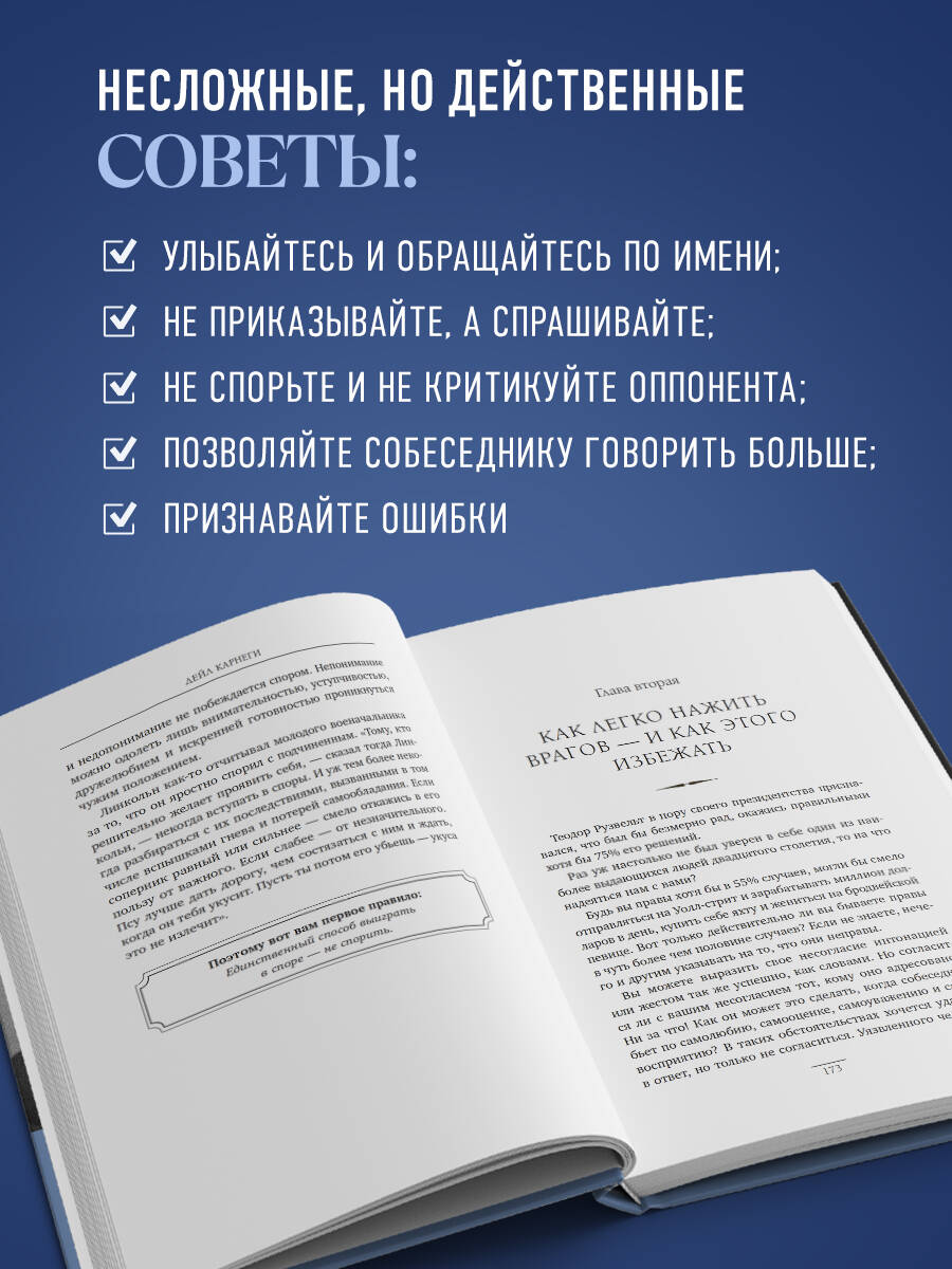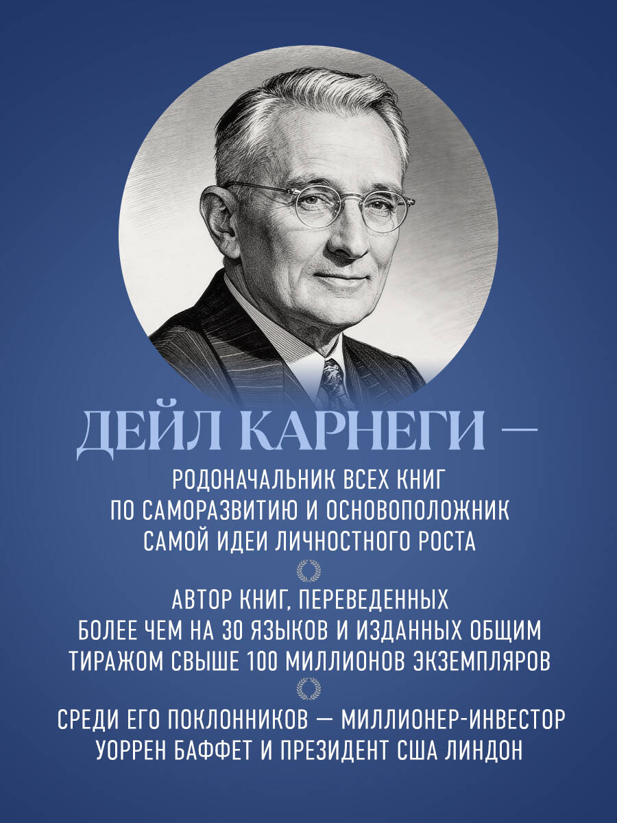 Дейл Карнеги - один из самых влиятельных мотивационных спикеров XX века, автор легендарных книг по личной эффективности и коммуникации, переведенных более чем на 30 языков и изданных общим тиражом свыше 100 миллионов экземпляров. Его принципы просты, но удивительно действенны. Они помогают завоевывать доверие, вдохновлять людей, влиять без давления и критики, строить отношения, основанные на уважении и взаимопонимании. Эта книга - практическое руководство по взаимодействию с людьми, которое до сих пор читают лидеры, предприниматели и все, кто хочет стать увереннее, убедительнее и успешнее. Из книги вы узнаете: • как вызывать симпатию и доверие с первых минут общения; • как мягко убеждать и вдохновлять людей следовать за вами; • как критиковать, не обижая их и не разрушая отношения; • как превращать конфликт в возможность укрепить связь.| Издательство | ООО "Издательство "Эксмо" |