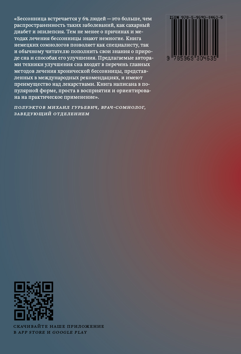 Кратковременные нарушения сна - такое же обычное явление в жизни человека, как простуда или насморк. Бессонница - одна из самых частых проблем, с которой пациенты обращаются к лечащим врачам. Множество проведенных исследований доказывают: в борьбе с нарушениями сна весьма эффективны навыки самопомощи. На основании этих исследований, а также с учетом отзывов пациентов о предложенной авторами системе аутотренинга было подготовлено данное руководство. Его авторы - психотерапевты и сомнологи (специалисты в области сна), имеющие многолетний опыт в диагностике и лечении нарушений сна. В книге вы найдете описание простых правил и действий, выполняя которые сможете самостоятельно добиться такого же эффекта, как и с помощью снотворных препаратов.| Издательство | Олимп-Бизнес |
