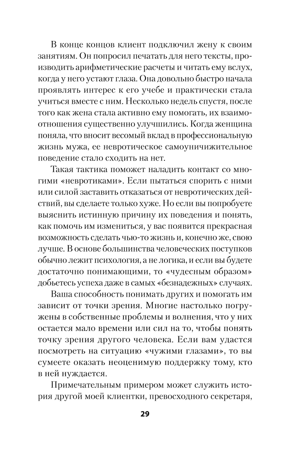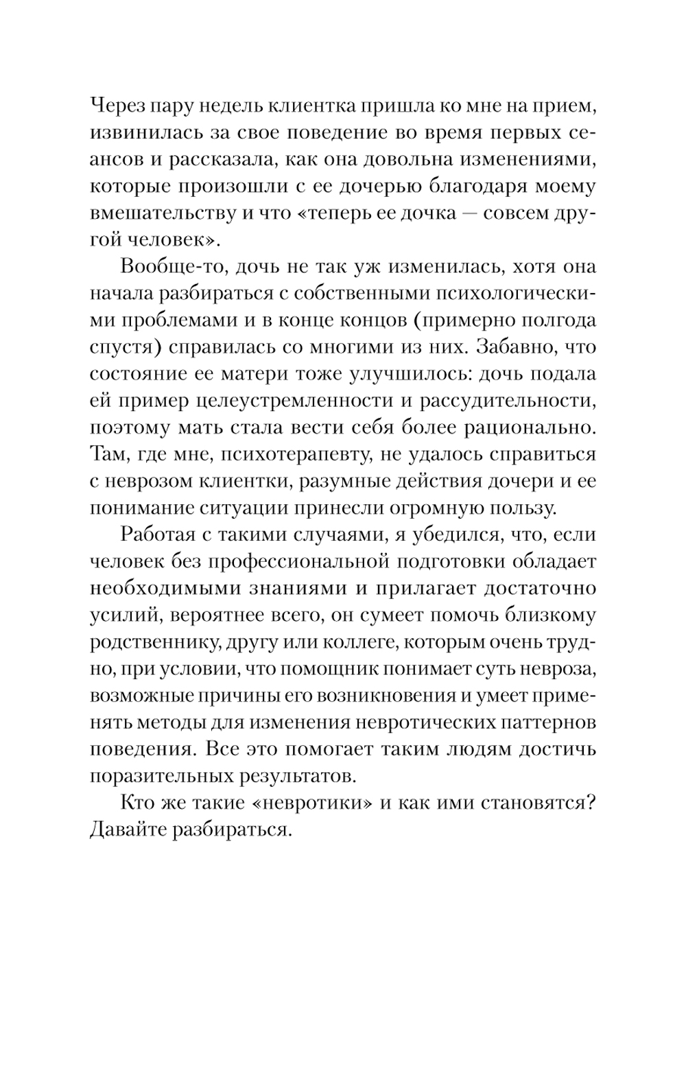 Как справляться с поведением людей, которое мы не в силах изменить? Невротическое поведение проявляют время от времени абсолютно все, но примерно половина людей делает это регулярно. Такие люди окружают нас в семье или на работе. Невротиками обычно принято называть тех, чьи чувства кажутся неуместными, а поведение настолько неэффективным или разрушительным, что они часто испытывают тревогу, депрессию, обиду или враждебность. Как быть, когда у близкого человека резко меняется настроение? Что делать, если он вдруг становится подозрительным и тревожным? Как строить планы, если он не может принять решение? Альберт Эллис, один из лучших психологов в мире, уверен, что вы научитесь регулировать свое состояние и эмоции, правильно подбирать слова и что ваша жизнь перестанет быть такой, как прежде.| Издательство | Питер |