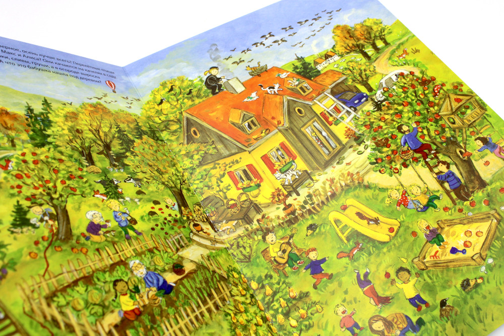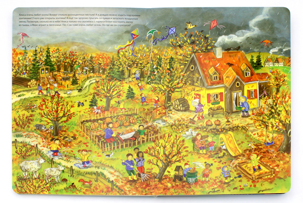 Какое время года лучше? Весна, когда распускаются цветы и возвращаются домой перелетные птицы? Жаркое лето, когда так приятно купаться в прохладной воде и есть мороженое? А может быть, осень, когда деревья становятся золотыми и красными? Или снежная зима, когда так весело играть в снежки и кататься на коньках? Понаблюдай вместе с Алисой и ее братиком Максом, как меняется природа в течение года. А заодно разгляди на картинках множество интересных деталей и забавных персонажей.