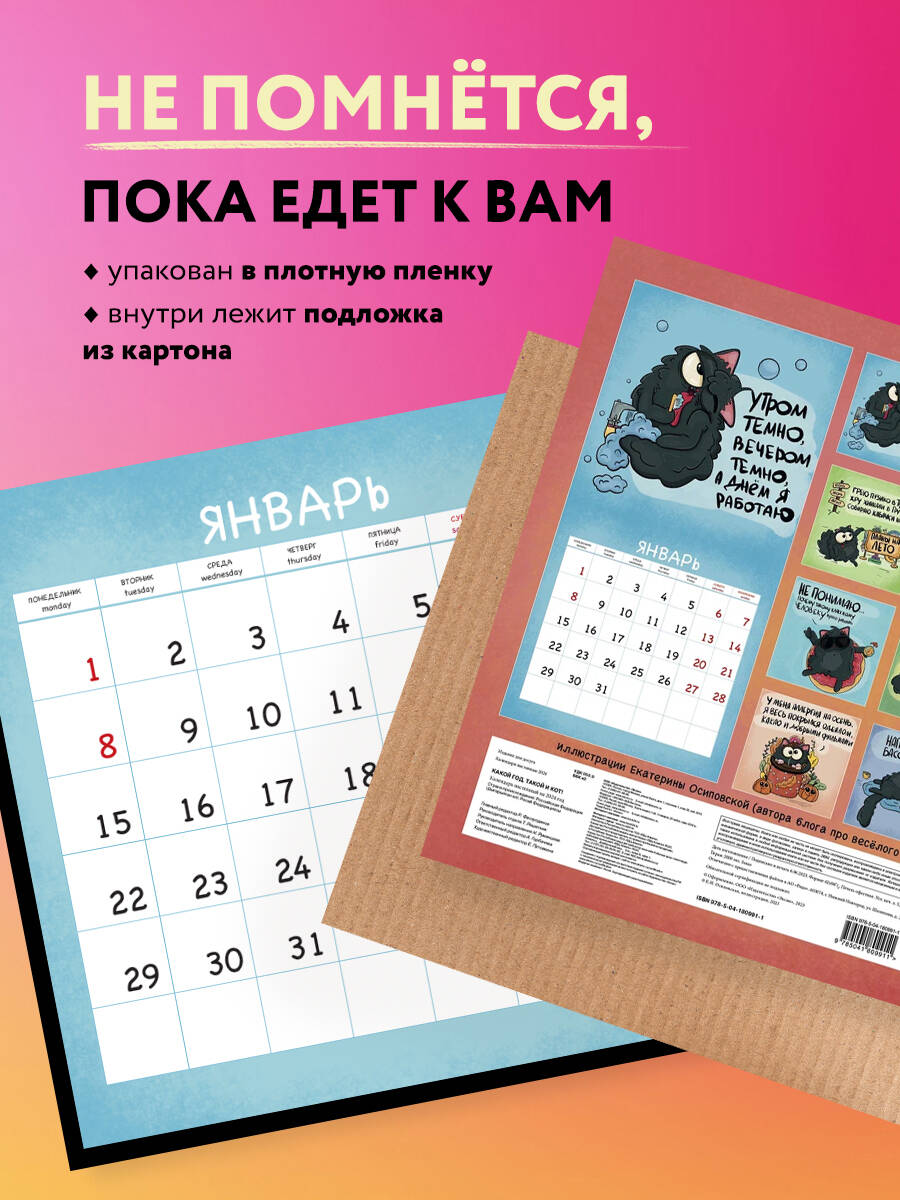 Коты бывают разные, но такого вы еще точно не встречали. Этот пушистый чертенок поднимет ваше настроение в любой день недели. Как и все мы (люди), он любит вкусно покушать, хорошо отдохнуть, ненавидит дедлайны и понедельники. P.S. Поэтому он пьет много кофе и вина! В этом календаре он шутит на самые жизненные темы. И - да, его невозможно не полюбить за его милую мордашку! А хозяйка кота - милая девушка Катя.| Издательство | ООО "Издательство "Эксмо" |