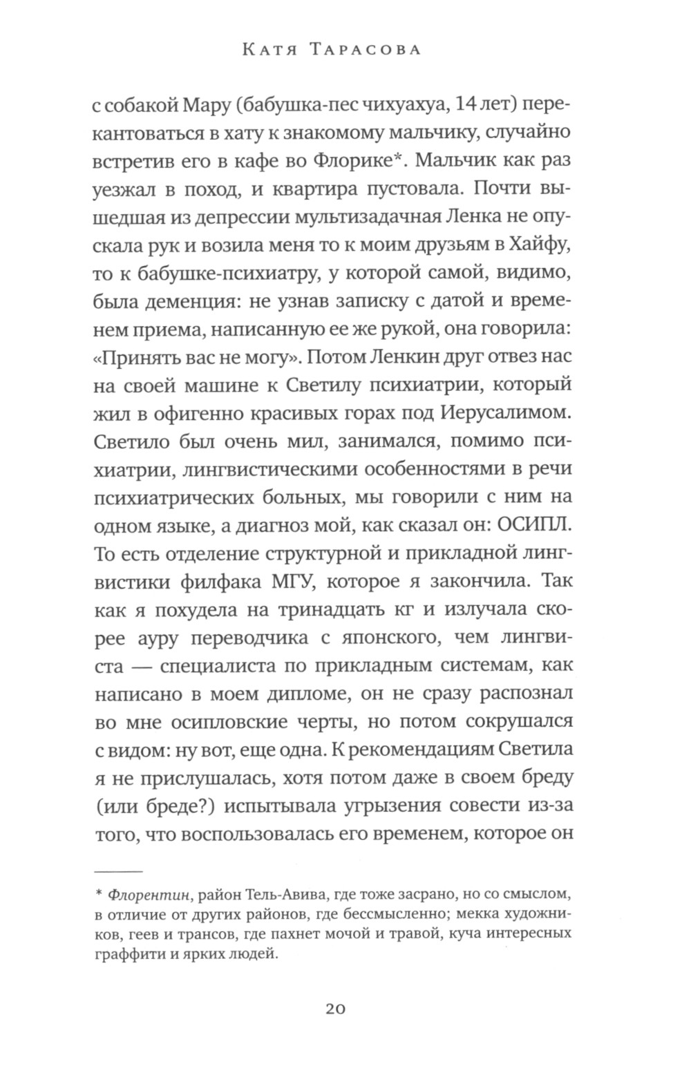 Яркие, живые, самоироничные записки Кати Тарасовой, переводчицы с японского языка, объездившей полмира - по работе и просто так. Она перевела много замечательных книг, была переводчиком одного из премьер-министров Японии, проработала около года на автомобильном заводе в Тольятти и даже как-то раз организовала гастрольный тур по Японии группе «Ночные снайперы» и отправилась вместе с ними... Катя блистательно рассказывает о себе, своей семье, своих собаках, многочисленных встречах, опыте пребывания в психиатрической больнице, а также близких и дальних знакомых - людях, которые поразили ее в самое сердце. Она непринужденно перемещается из Москвы в Тель-Авив и Осаку, из Эвенкии - на рижскую Маскачку, собирает невероятные случаи и смешные байки, чтобы лишний раз напомнить себе и своим читателям, какая все-таки удивительная и непредсказуемая штука - жизнь!| Издательство | Livebook (Лайвбук) |