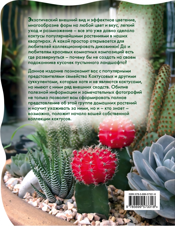 Эта книга не только познакомит читателя с самыми популярными и любимыми кактусами и суккулентами. Вы освоите основные правила агротехники, узнаете, как создать комфортные условия обитания, познакомитесь со множеством секретов и хитростей, которые пригодятся вам для содержания кактусов и суккулентов. Стоит начать - и, возможно, это положит начало вашей собственной коллекции!