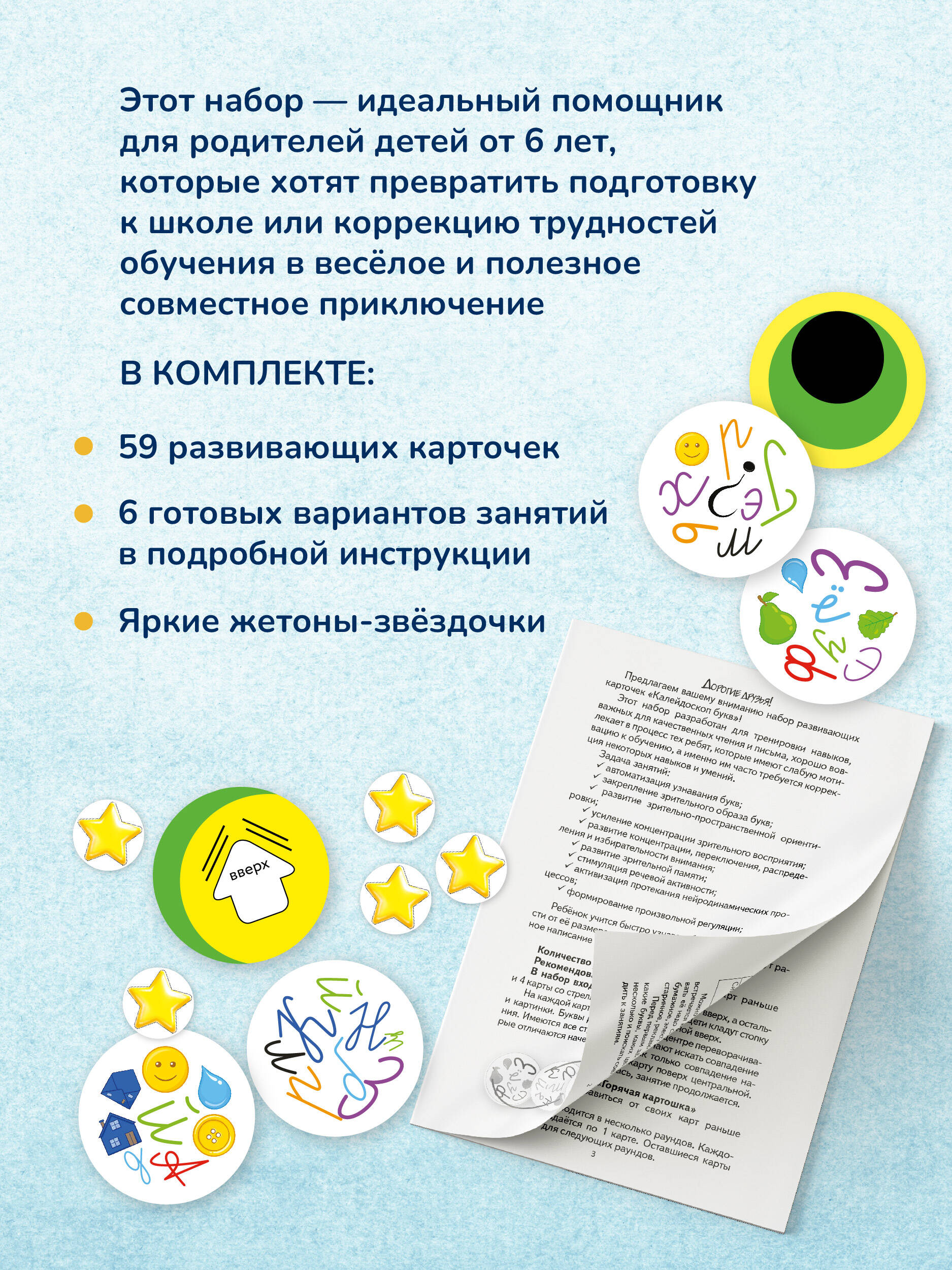 Аннотация: Калейдоскоп букв. Набор развивающих карточек для занятий с детьми от 6 лет