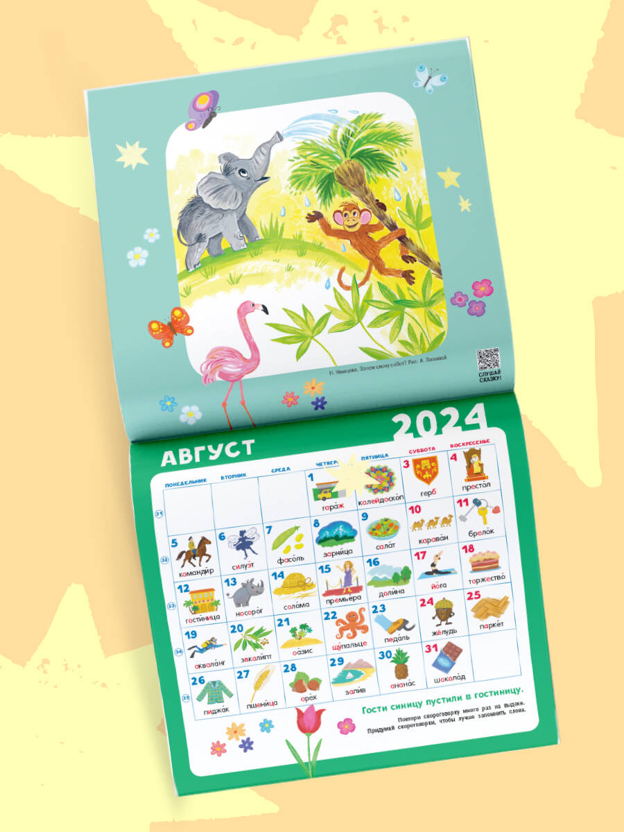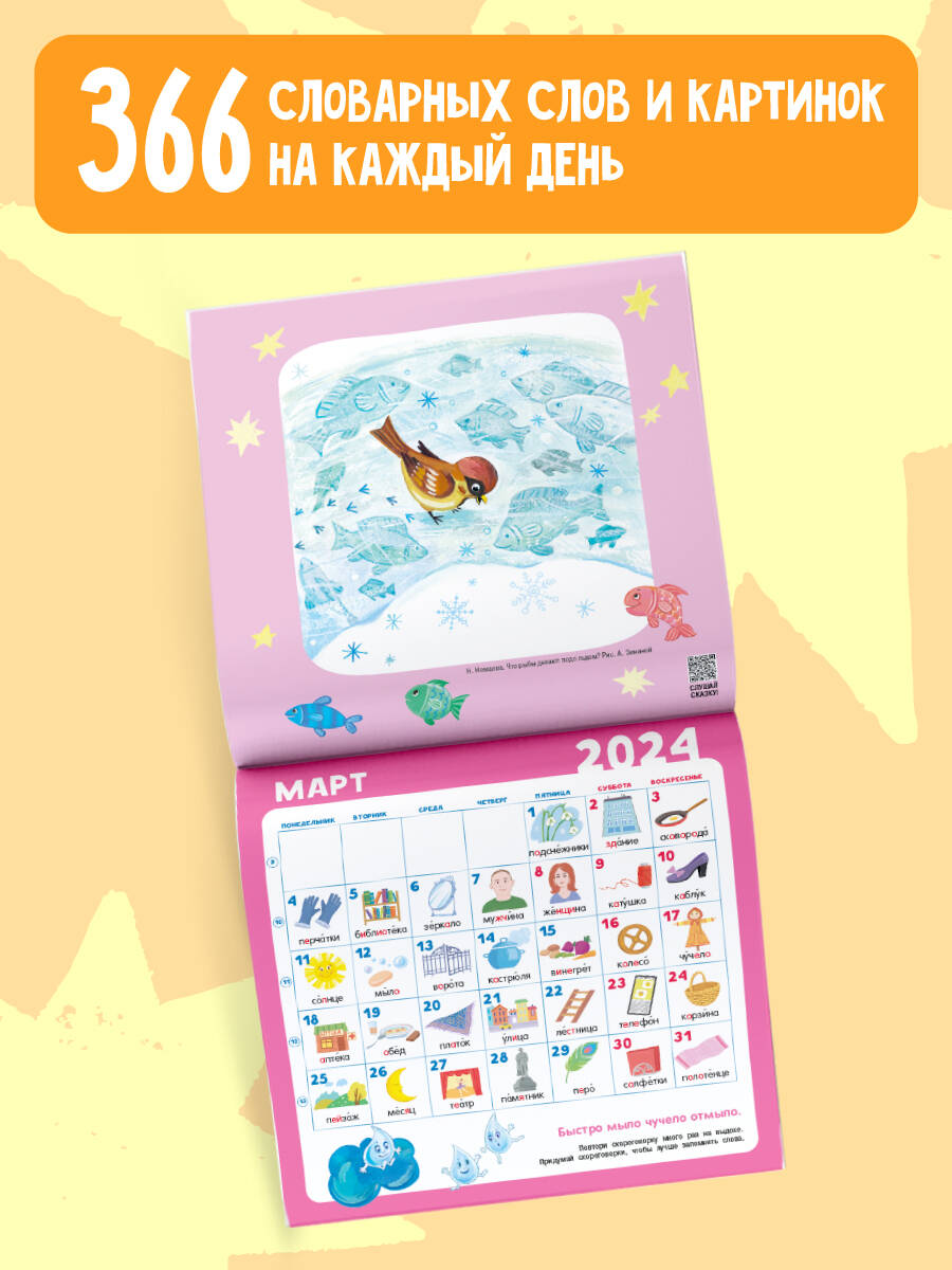 Стать грамотным легко! Красочный календарь со множеством чудесных картинок и прикольных скороговорок поможет вашему ребенку быстро и без труда запомнить целых 366 словарных слов! Занимайтесь каждый день всего несколько минут, и результат появиться уже через месяц. А познавательные аудиосказки популярного детского автора Н. Немцовой помогут расширить кругозор и подарят хорошее настроение. Занимайтесь с пользой и удовольствием целый год!| Издательство | ИЗДАТЕЛЬСТВО "АСТ" |