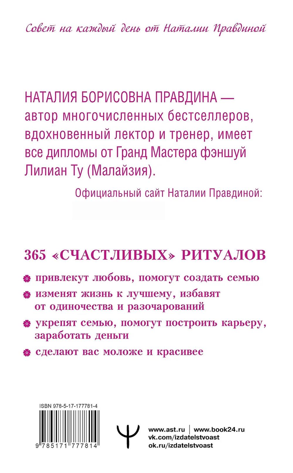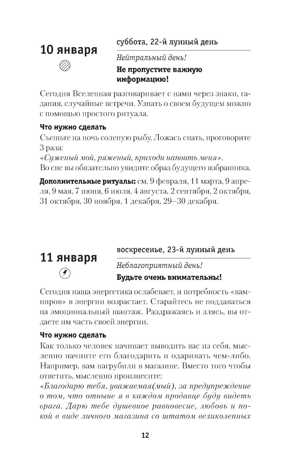 Согласно Ведам, древнеиндийским текстам, Луна усиливает внутреннюю «тонкую» энергию женщины. Женщина, живущая по лунному календарю, всегда прекрасна! Луна - это сила, тайна и мудрость. Согласуя свою жизнь с лунным календарем, вы раскрываете в себе Женщину-Богиню! В «Календаре для женщин на 2026 год. 365 практик от Мастера. Лунный календарь» Наталии Правдиной вы найдете подробные рекомендации на каждый день предстоящего года. Они помогут вам привлечь любовь, создать семью, изменить жизнь к лучшему, избавиться от одиночества, построить карьеру, заработать деньги, стать красивее и почувствовать себя моложе.| Издательство | АСТ |