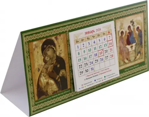 Календарь-домик на 2024 год с ликами Пресвятой Троицы (Рублевская) и Божией Матери "Владимирская"