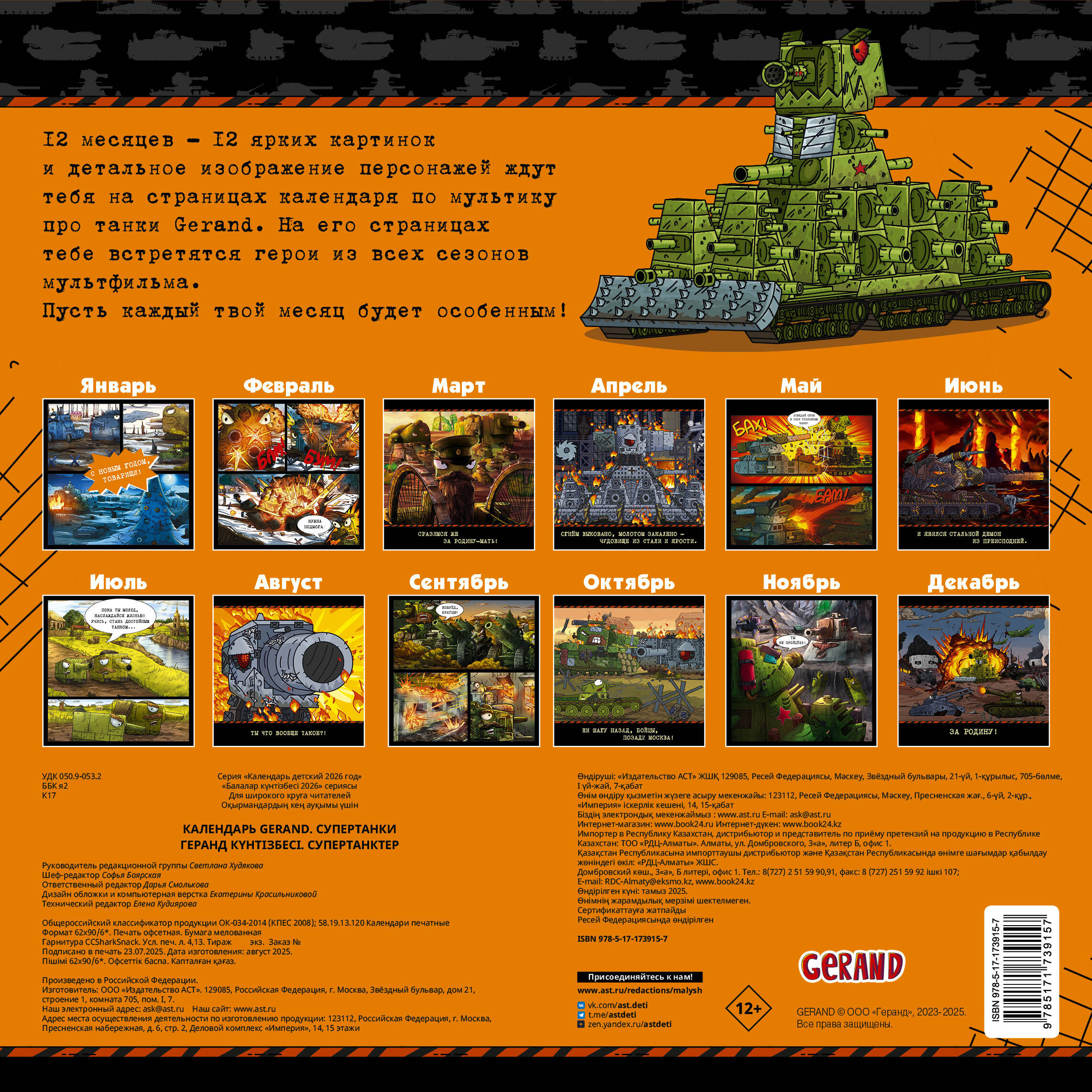 12 месяцев - 12 ярких картинок и детальное изображение персонажей мультфильма ждут тебя на страницах календаря по мультику про танки Gerand. На его страницах тебе встретятся герои из всех сезонов мультфильма. Пусть каждый твой месяц будет особенным!| Издательство | Издательство "АСТ" |
