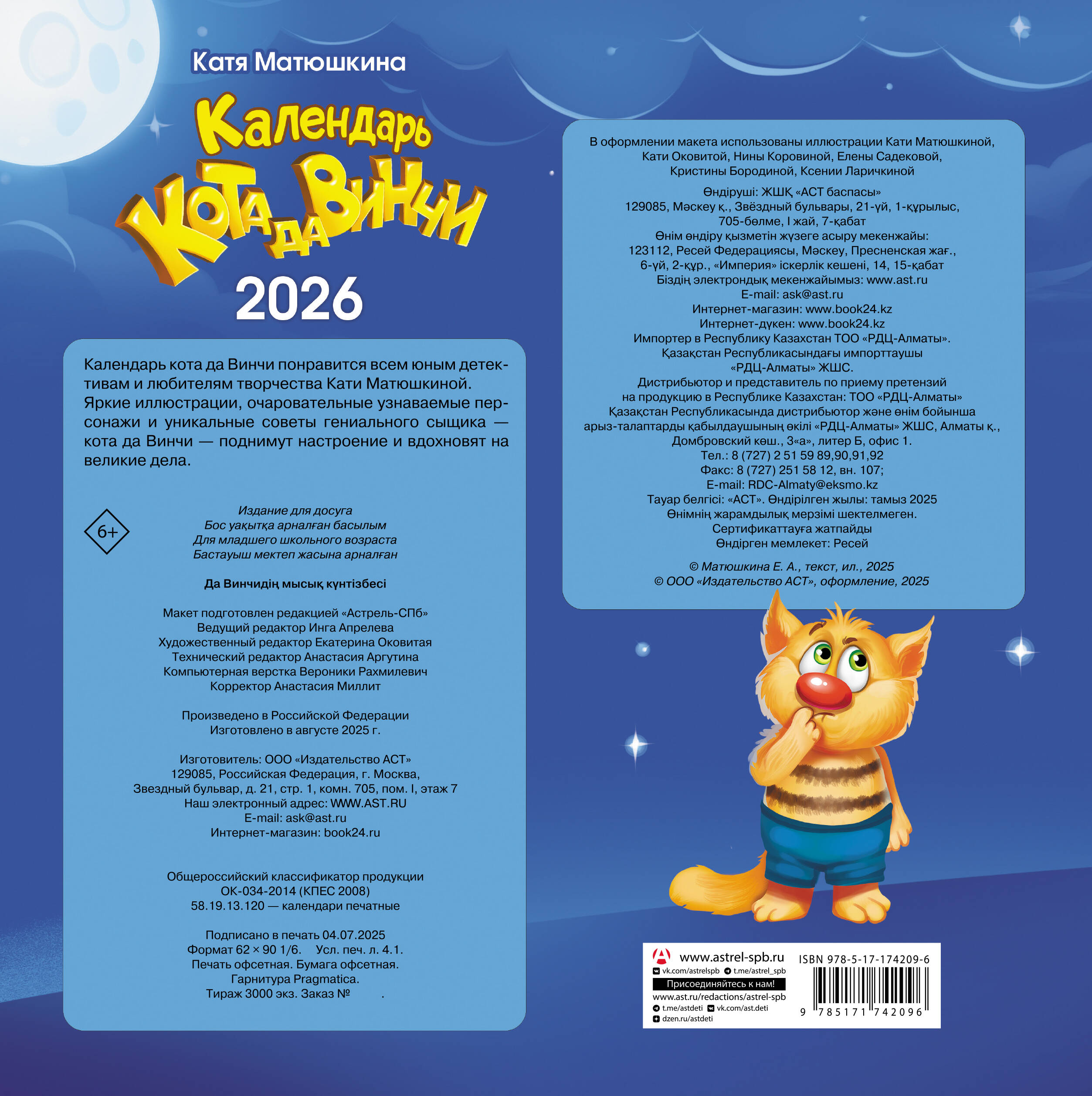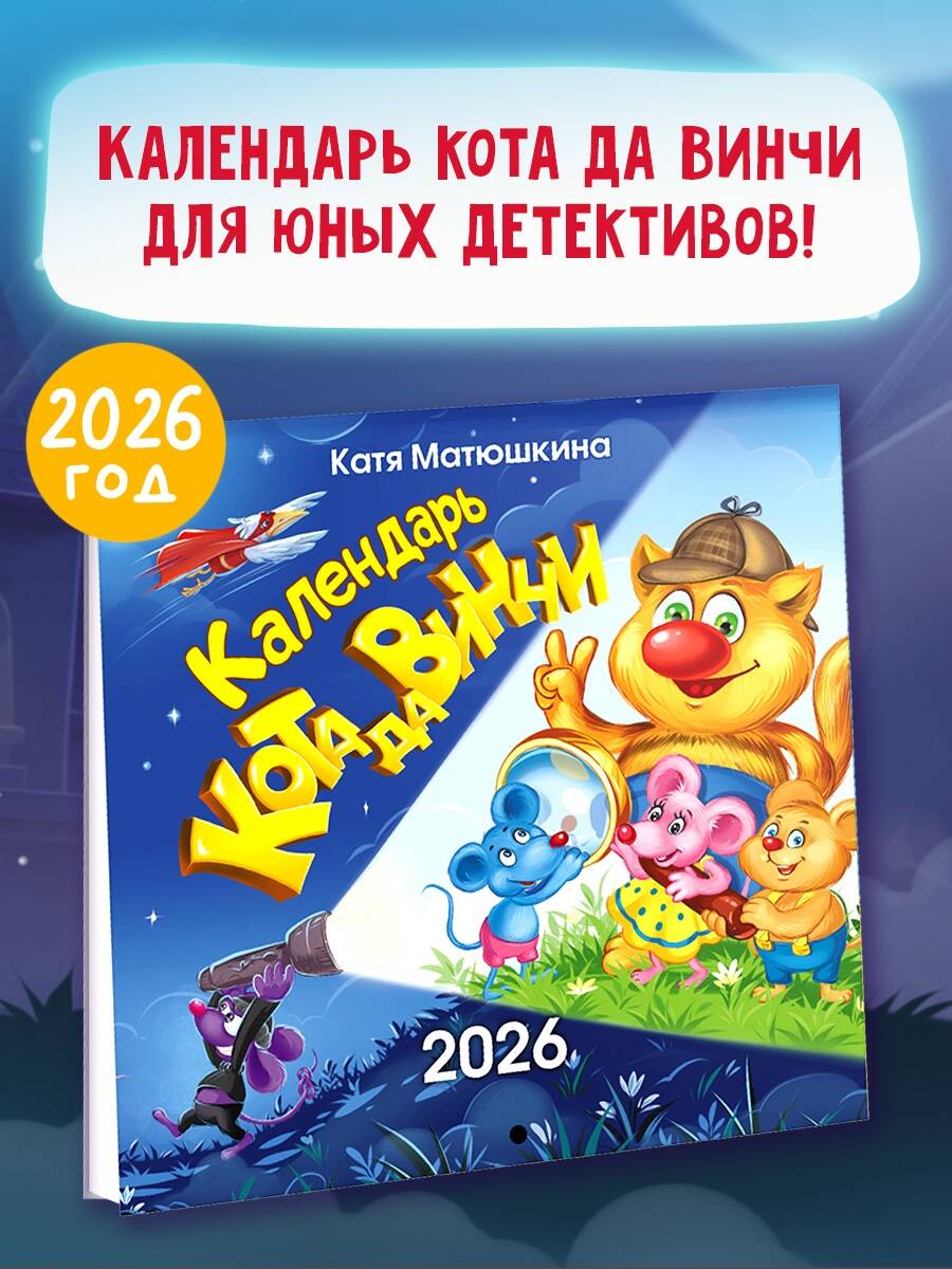 Календарь кота да Винчи понравится всем юным детективам и любителям творчества Кати Матюшкиной. Яркие иллюстрации, очаровательные узнаваемые персонажи и уникальные советы гениального сыщика - кота да Винчи - поднимут настроение и вдохновят на великие дела.| Издательство | Издательство "АСТ" |