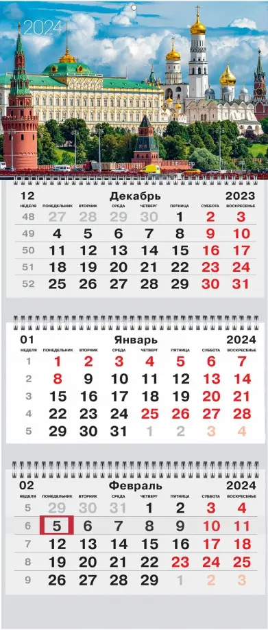 Классический квартальный календарь "Государственная символика" на 2024 год Эксмо - неизменный атрибут любого офиса, предприятия и дома, который позволяет вести учет рабочего времени, рассчитывать дни отпуска, а также планировать и реализовывать различные цели и бизнес-задачи. Календарь большого размера (305мм*680мм), состоит из трех блоков на евроспиралях, каждый блок - это отдельный месяц, который позволяет без перелистывания видеть даты предыдущего и будущего месяца и вести среднесрочное планирование в рамках квартала (3 месяца). Яркий указатель - бегунок не даст потеряться важным датам, а металлическое крепление в верхней части календаря - пикколо облегчает крепление к стене и защищает само отверстие от повреждений. Модель календаря с изображением главных символов государства, на постере, станет отличным дополнением к деловому подарку, который подчеркнет важность и статусность обладателя. Календарь поставляется в индивидуальной упаковке.