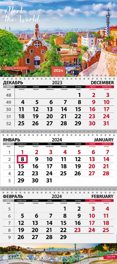 Календарь квартальный на 2024 год Путешествия. Испания