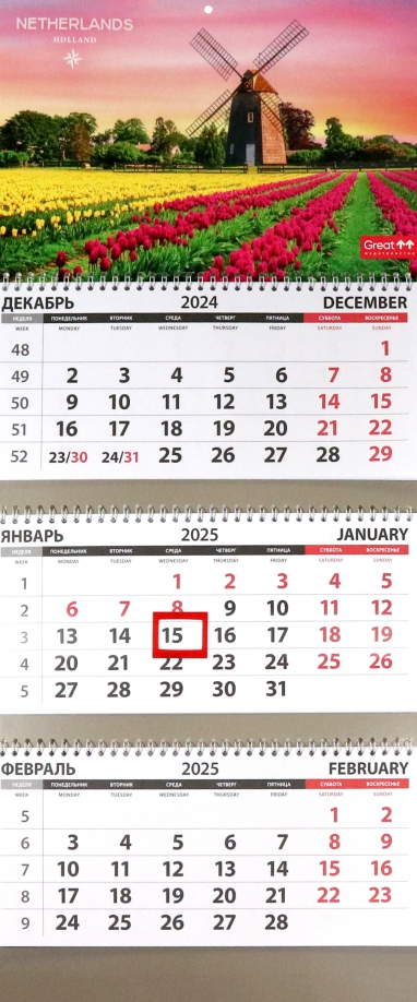 Календарь квартальный на 2025 год Путешествия. Нидерланды
