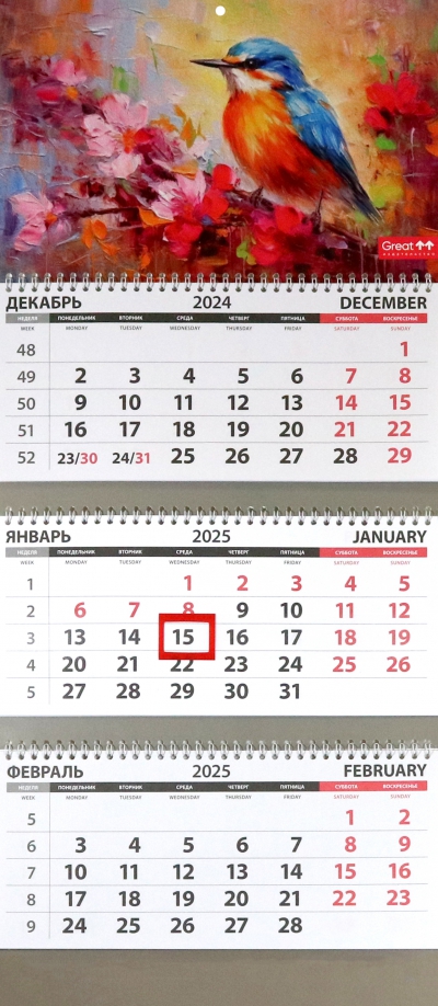 Календарь квартальный на 2025 год Райская птичка