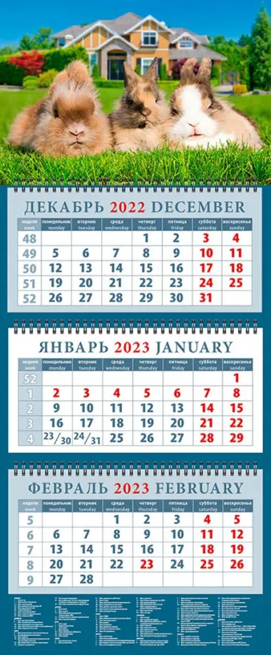 Календарь на 2023 год. Год кролика. Три богатыря