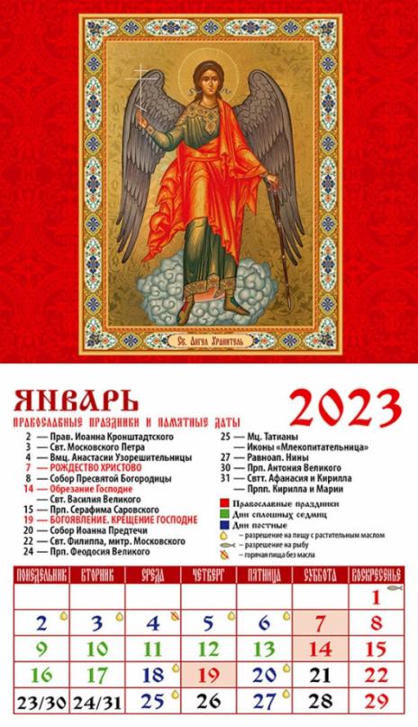Календарь на 2023 год. Святой Ангел-Хранитель