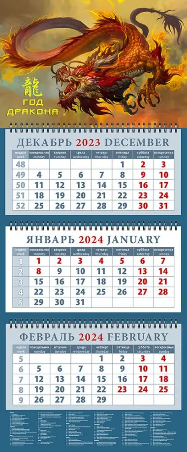 Календарь на 2024 год Год дракона