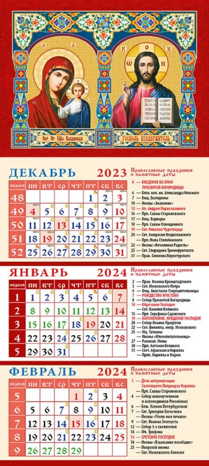 Календарь на 2024 год Образ Пресвятой Богородицы Казанская