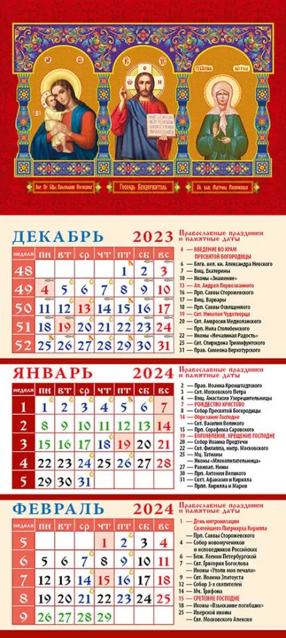 Размер календаря: 110х245 мм.