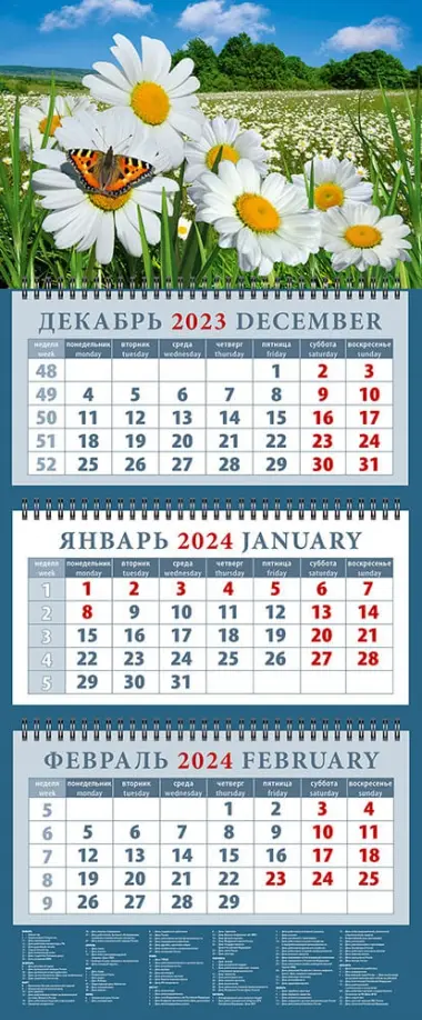 Календарь на 2024 год Пейзаж с ромашками и бабочкой