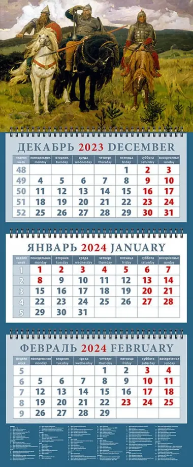 Календарь на 2024 год Три богатыря, Виктор Васнецов