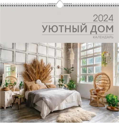 Настенный перекидной календарь "Уют" на 2024 год Эксмо - стильный атрибут для ежемесячного планирования. Календарь средних размеров 320мм*320мм, с 6-ю листами высокого качества исполнения, которые станут прекрасным дополнением интерьер-дизайна современного офиса или дома. Внутри календаря, на каждом развороте, мы поместили красочные иллюстрации, которые создают максимально благоприятные условия для жизни дома, на рабочем месте и даже на отдыхе. Красота, эстетика и художественность интерьер-дизайна сделают вашу жизнь ярче, насыщеннее и просто приятнее. Комфортная для глаз сетка, на 1 месяц, позволит планировать и реализовывать различные цели и бизнес-задачи каждый день. Удобное крепление страниц на евроспирали с ригелем (металлический стержень с петлей) позволяет легко разместить его на любой вертикальной поверхности. Календарь поставляется в индивидуальной упаковке.