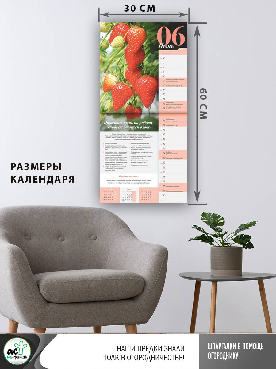 "Всякое семя знает свое время" - гласит русская народная пословица. И с ней остается только согласиться, ведь в каждый месяц любой огородник найдет свое особое занятие и культуру для посадки. Алена Волкова, автор блога "Алёнин сад", поделится с вами мудростью и практическими советами того, как грамотно организовать огородные работы в каждом месяце. Здесь вы найдете народные приметы, которые помогут скорректировать посадки в зависимости от погодных ненастий, подробные рекомендации по уходу за растениями, сбору урожая и другим важным задачам. Наш календарь станет вашим незаменимым спутником на протяжении всего года!| Издательство | Издательство "АСТ" |