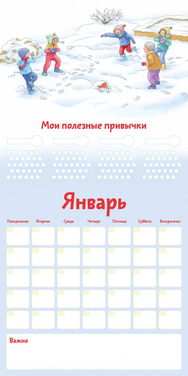 Календарь подходит детям от 3 лет и старше: малыши будут с интересом расклеивать картинки и составлять планы гостей и поездок к бабушкам, а дети 5-6 лет станут полноправными участниками процесса выбора новых навыков и их освоения.