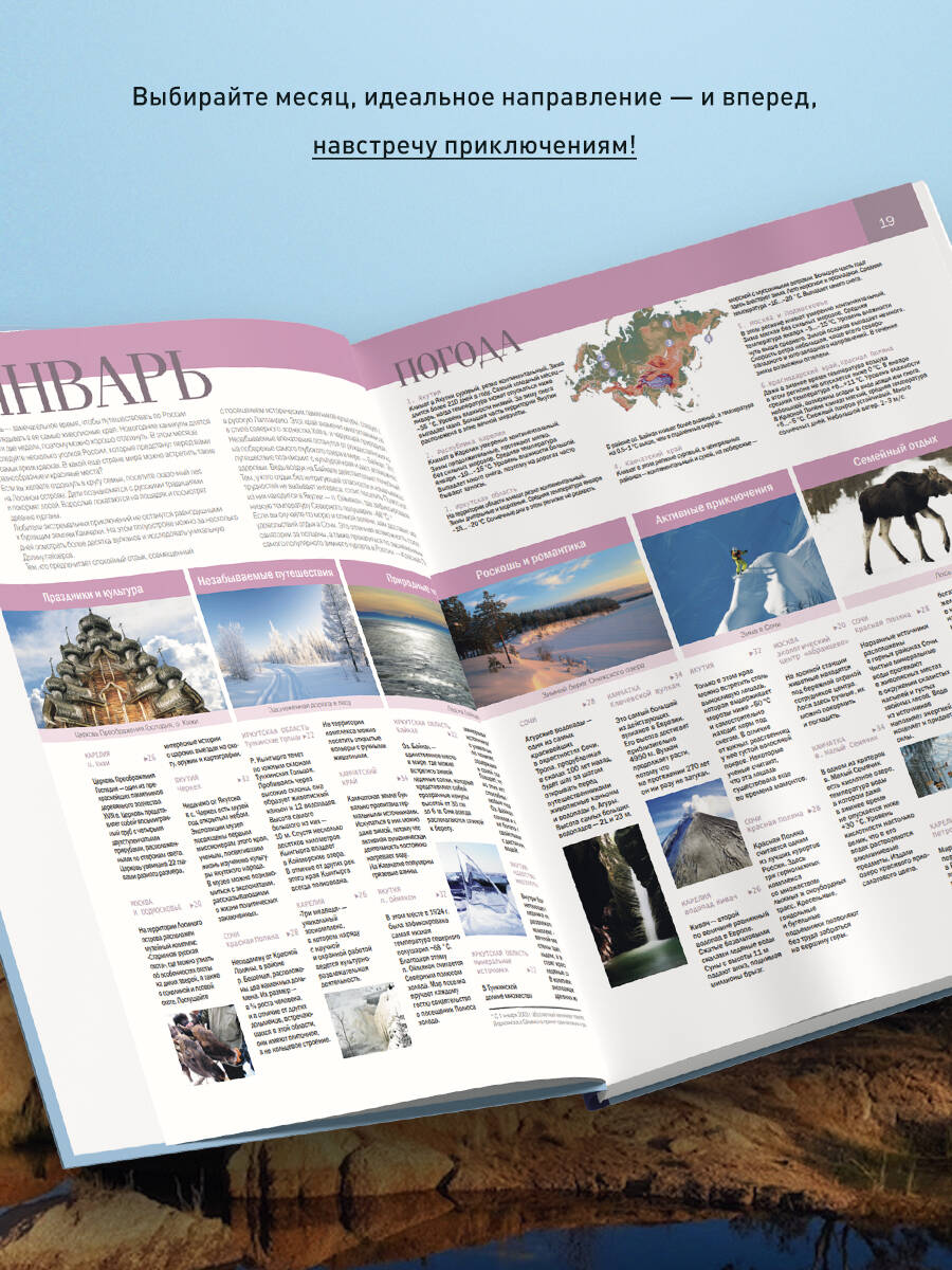 Откройте для себя Россию! На территории нашей страны есть множество природных зон, народностей и чудес, с которыми каждый путешественник непременно хочет познакомиться. Но какое время года выбрать, чтобы получить от поездки максимум впечатлений? Перед вами книга «Календарь путешествий по России», которая поможет составить маршруты на все 12 месяцев для идеального отдыха, будь то поход в Адыгее, рыбалка в Сибири или лыжное путешествие по Лосиному острову в Москве. Эта книга вам расскажет: - Как выбрать лучшее время для путешествия. - Какие аутентичные сувениры привезти из поездки. - Как добраться до каждой точки на маршруте. - Какие достопримечательности посетить. - Как активно провести время в зависимости от сезона. В этом издании около 1000 красочных фотографий с самыми интересными местами, а к каждой поездке есть бонус в виде мини-карт, которые помогут посетить все достопримечательности на маршруте. Экспедиция на полюс холода, горячее дыхание Камчатки, удивительный Калининград, мистические места Санкт-Петербурга, могучие льды Байкала, разнообразие Алтая, горнолыжный отдых в Сочи и горы Кавказа - выберите свое идеальное направление!| Издательство | ООО "Издательство "Эксмо" |