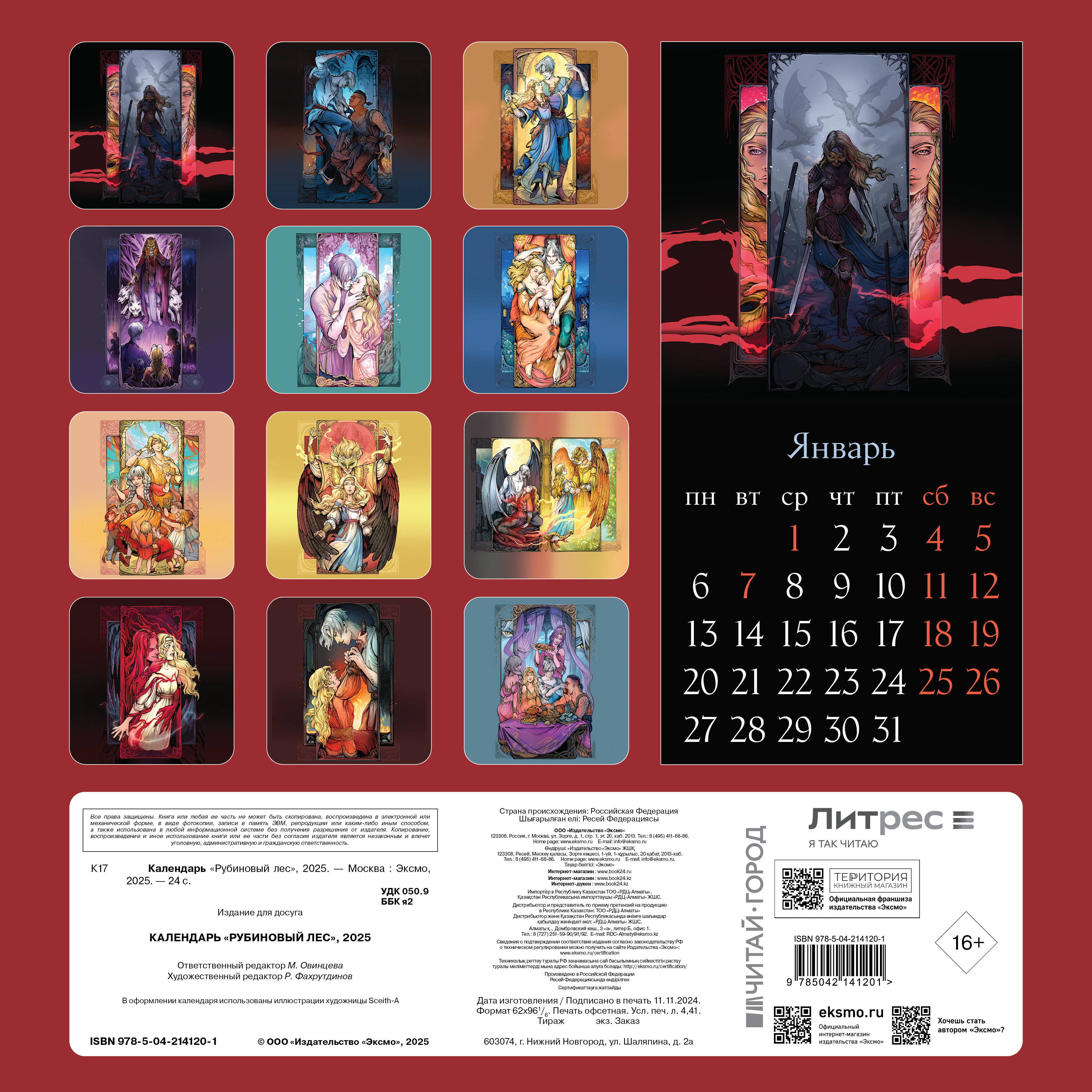 Календарь на 2025 год с красочными иллюстрациями из омнибуса дилогии «Рубиновый лес». В оформлении использована уникальная иллюстрация-бонус! Иллюстрации Ольги Левиной (Sceith-A).| Издательство | ООО "Издательство "Эксмо" |