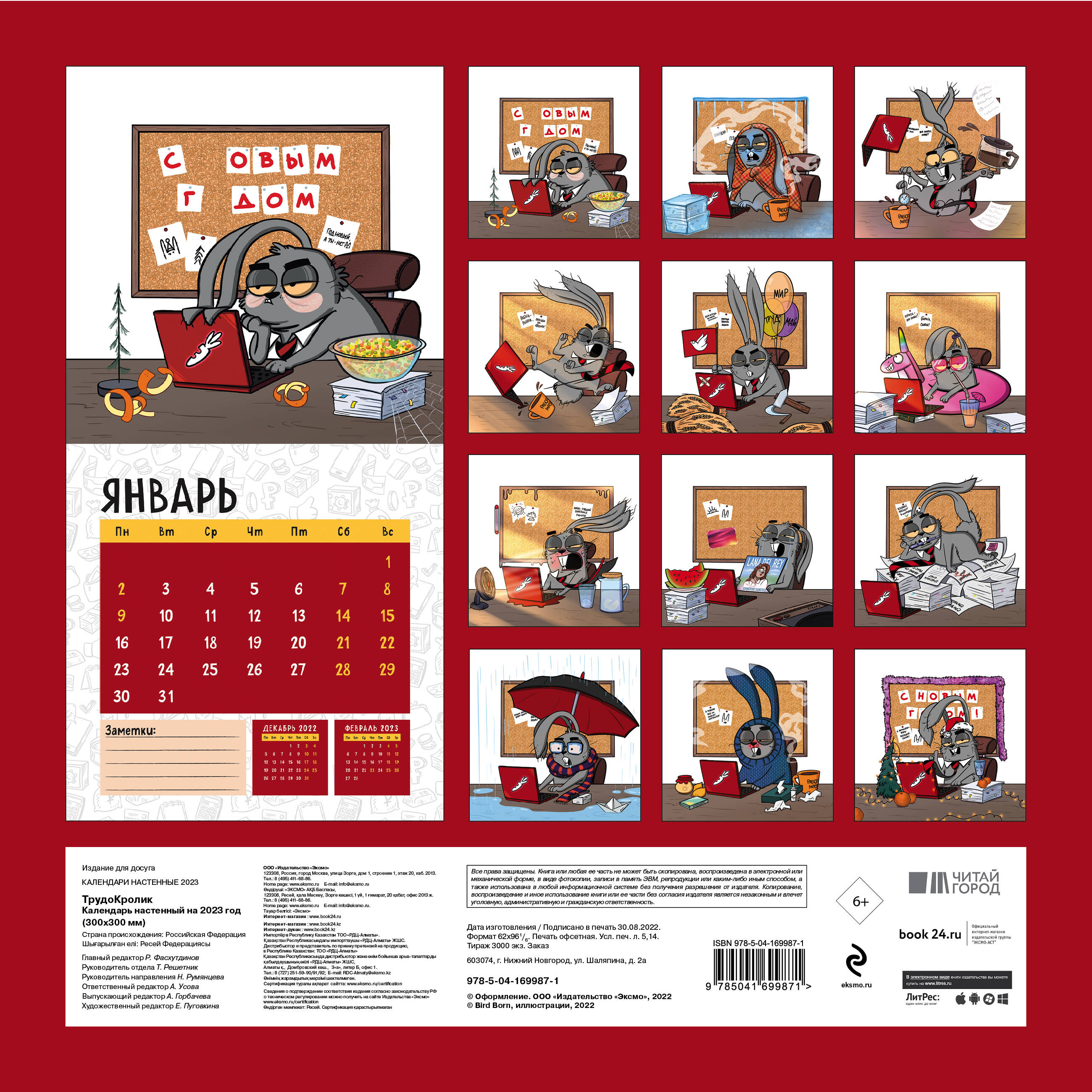 Аннотация: Календарь трудокролика от Bird Born. Календарь настенный на 2023 год (300х300 мм)