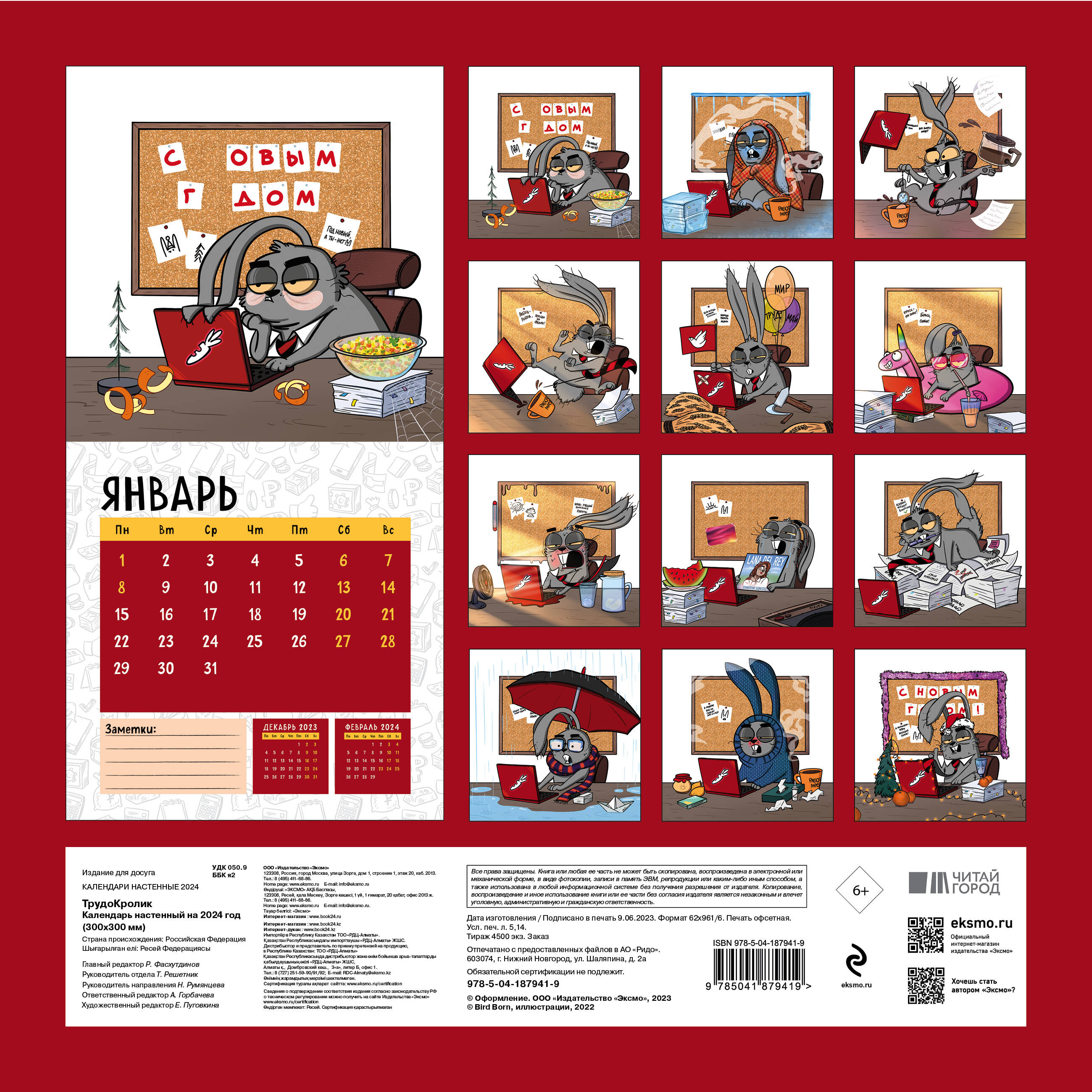 Аннотация: Календарь трудокролика от Bird Born. Календарь настенный на 2024 год (300х300 мм)