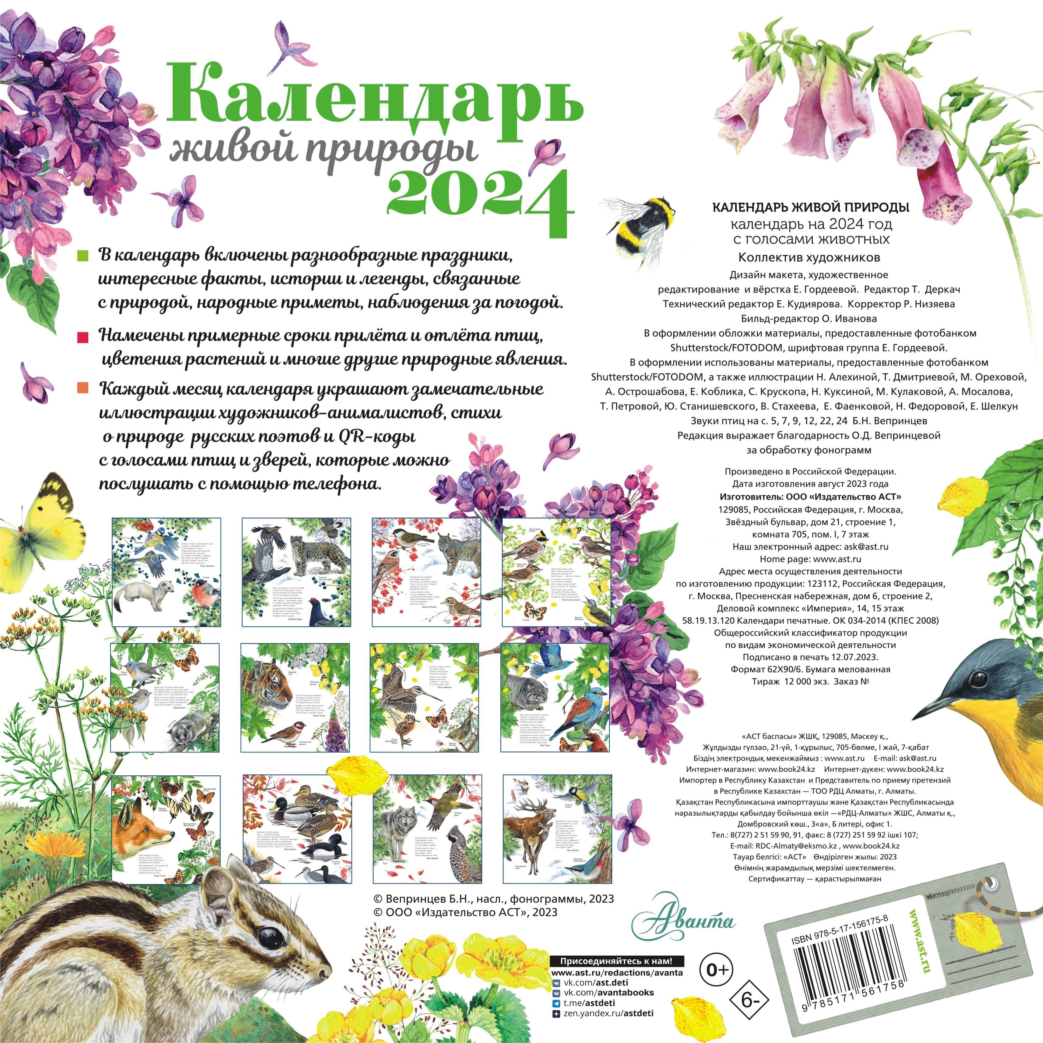 Аннотация: Календарь живой природы с голосами животных 2024 год