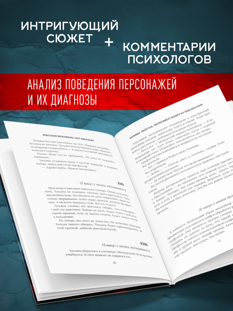 Психологический триллер и детектив под одной обложкой. Профессор психиатрии Виктор Мещерский проводит необычный социальный эксперимент: собирает в подвале загородного дома восемь человек - преступников и их жертв. Чтобы предотвратить насилие и контролировать ситуацию, на участников надеты браслеты, бьющие электрическим током, а по всем комнатам развешаны камеры видеонаблюдения. Новеллизация популярного сериала с Федором Бондарчуком в главной роли. Сериал был представлен на III фестивале контента стриминговых платформ Original+ и удостоился наград в трех категориях: «Самый ожидаемый проект», «Оригинальный актер» (Федор Бондарчук) и специальный приз жюри СМИ «Лучший сериал фестиваля». «Калимба. Запертые» затрагивает множество нюансов человеческой психики, которые влияют на сюжет, мотивацию персонажей и складывающиеся между ними отношения. Книгу будет интересно прочитать даже тем, кто посмотрел сериал: психологи анализируют поведение и мотивацию персонажей, создают их профайлинг, рассказывают, что такое диссоциативное расстройство идентичности (ДРИ), диссоциативная фуга, комплексное посттравматическое стрессовое расстройство (КПТСР) и ретравматизация, с которыми сталкиваются герои.| Издательство | ООО "Издательство "Эксмо" |