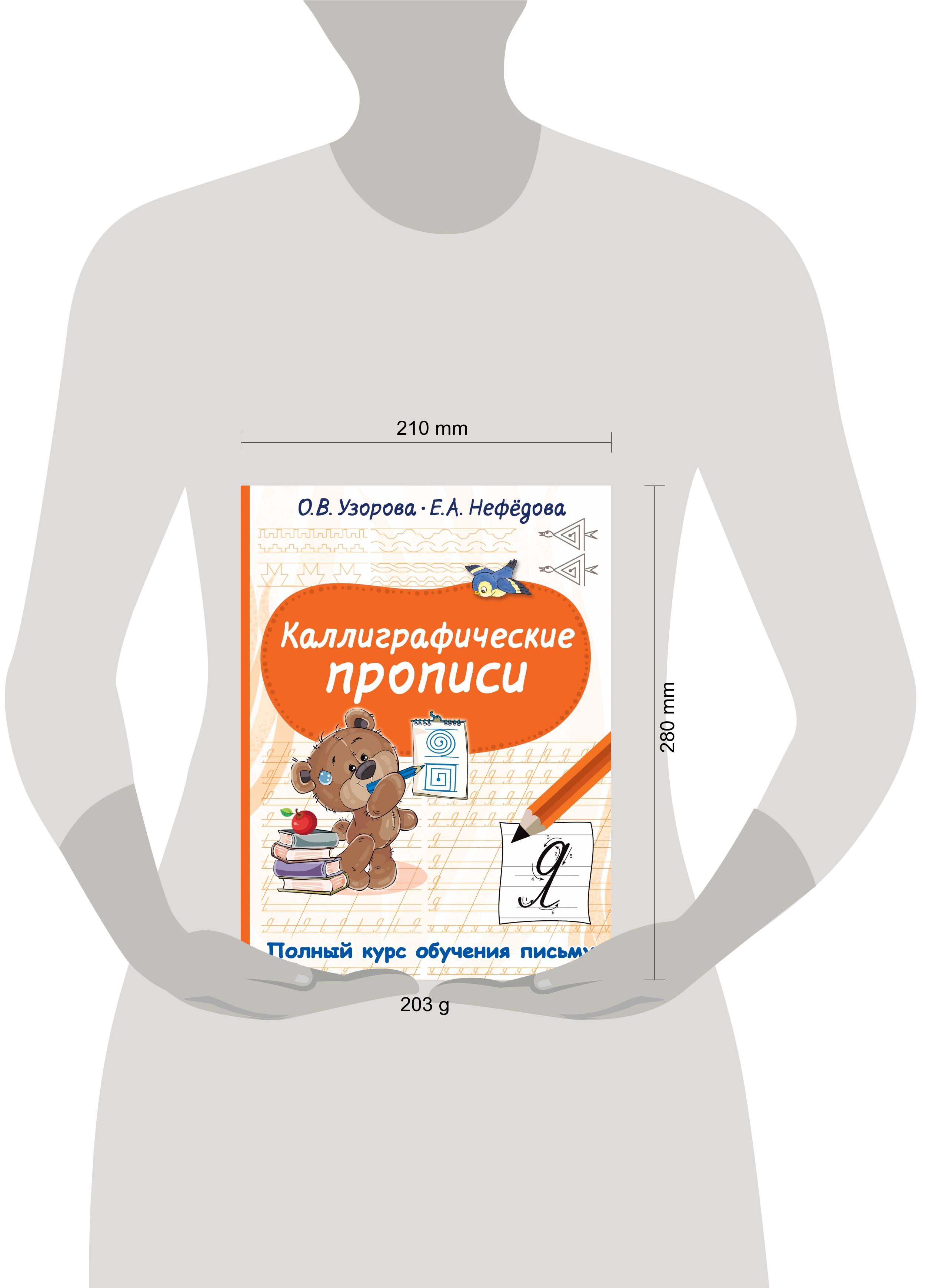 Учебное пособие «Каллиграфические прописи» представляет собой рабочую тетрадь, в которой ученики потренируются аккуратно и красиво писать буквы, их элементы, варианты соединений, а также слоги, слова и предложения. 5 причин купить книгу • О. В. Узорова - самый востребованный автор. • Соответствует федеральным программам для начальной школы. • Представлена эффективная методика, в которую включено поэтапное обучение письму - от первого шага до каллиграфического написания букв. • Удобная рабочая тетрадь, в которой ребёнок потренируется писать буквы, их элементы и варианты соединений, слоги и слова. • Ребёнок сможет выработать красивый почерк и увеличить скорость письма.| Издательство | АСТ |