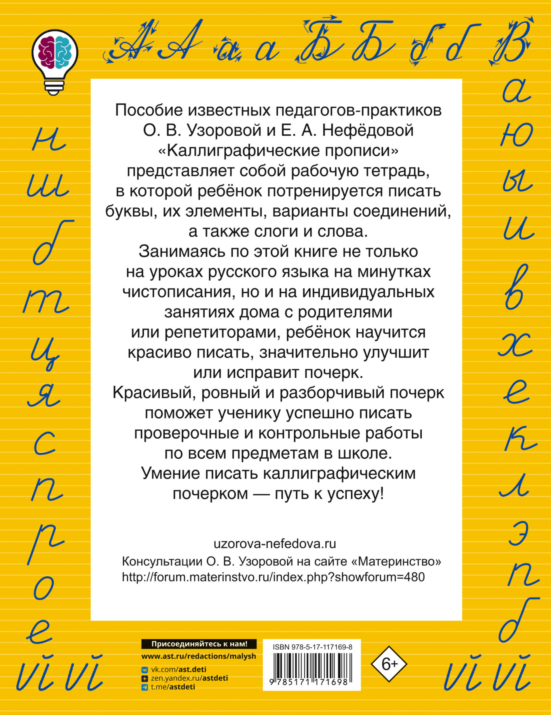 Учебное пособие поможет учащимся начальных классов сформировать графические навыки письма, выработать красивый почерк и увеличить скорость письма. Отличное дополнительное пособие для учащихся начальных классов. • Соответствует ФГОС для начальной школы. • Пособие представляет собой рабочую тетрадь, в которой ребёнок потренируется писать буквы, их элементы и варианты соединений, слоги и слова. • Занимаясь по этому пособию, ребёнок сможет выработать красивый почерк и увеличить скорость письма. • Пособие можно использовать для работы дома, а также в качестве дополнительного материала на уроках в классе.| Издательство | ИЗДАТЕЛЬСТВО "АСТ" |