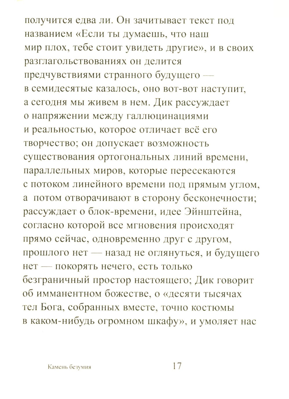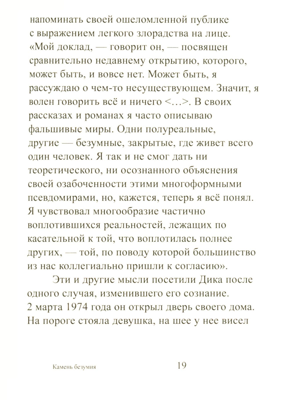 В эссе, составляющих книгу «Камень безумия», чилийский писатель Бенхамин Лабатут продолжает тему, начатую им в бестселлере «Когда мы перестали понимать мир»: несмотря на стремление человека к рациональности, развитию науки и прогрессу, контуры реальности размываются у нас на глазах, мир развертывается как непостижимый хаос, чья логика доступна лишь безумцу. Откликаясь на события последних лет: пандемия, использование искусственного интеллекта, протесты в Чили и других странах, Лабатут размышляет о причинах нынешнего кризиса нарративов, рухнувших под натиском неудержимого прихода нового. Когда мир становится всё страннее и страннее, научный подход, холодные факты и цифры не могут оставаться единственным ключом к пониманию; возможно, чтобы не проснуться однажды в ночном кошмаре, нужно чаще прислушиваться к нашим самым безумным снам.
