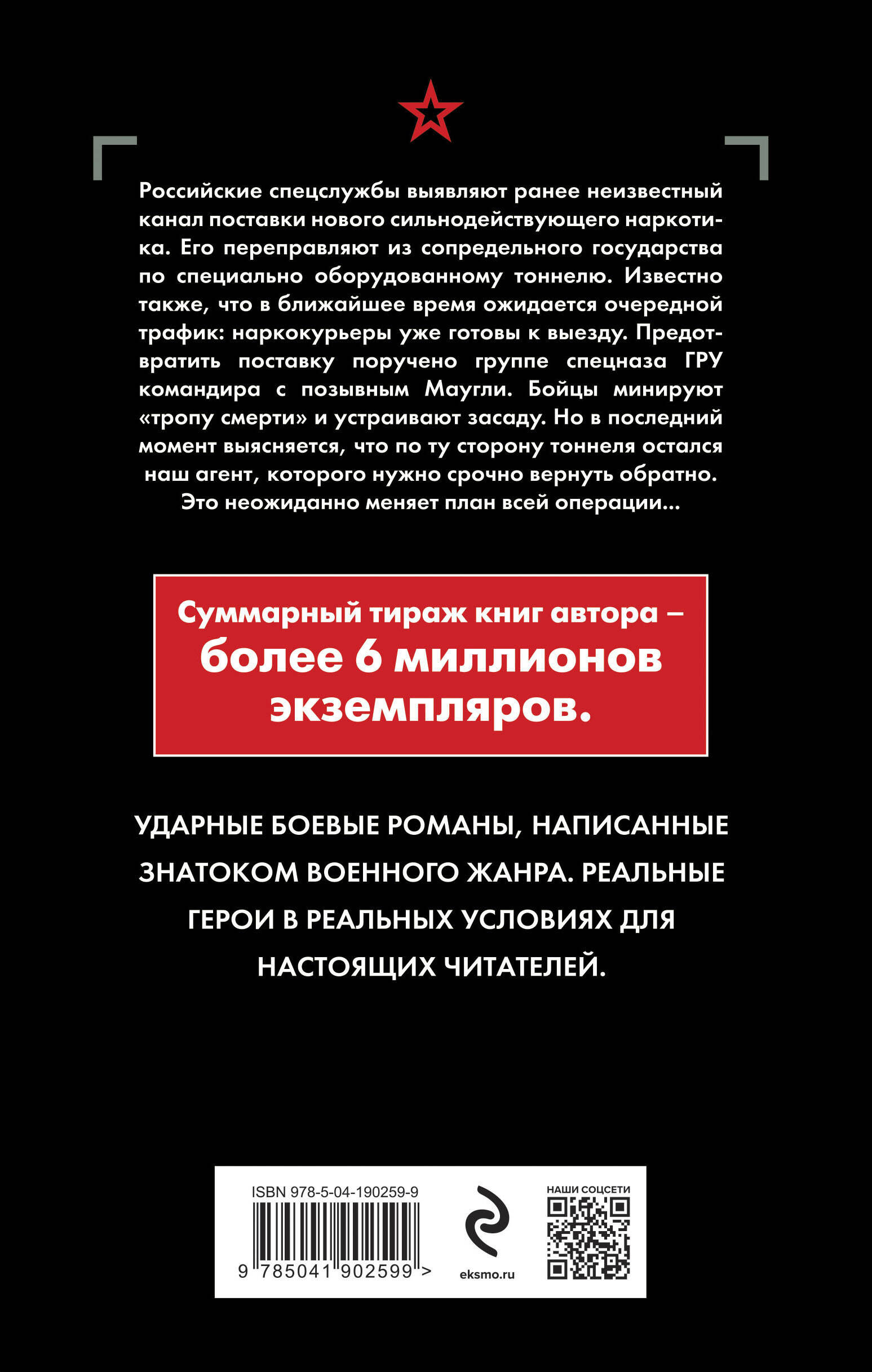 Ударные военные романы, написанные настоящим знатоком жанра. Суммарный тираж книг автора - более 6 миллионов экземпляров. Российские спецслужбы выявляют ранее неизвестный канал поставки нового сильнодействующего наркотика. Его переправляют из сопредельного государства по специально оборудованному тоннелю. Известно также, что в ближайшее время ожидается очередной трафик: наркокурьеры уже готовы к выезду. Предотвратить поставку поручено группе спецназа ГРУ командира с позывным Маугли. Бойцы минируют «тропу смерти» и устраивают засаду. Но в последний момент выясняется, что по ту сторону тоннеля остался наш агент, которого нужно срочно вернуть обратно. Это неожиданно меняет план всей операции... Реальные герои в реальных условиях для настоящих читателей. Горные перевалы, засады и жестокие схватки с бандитами - такова пропитанная порохом атмосфера этих захватывающих боевиков.| Издательство | ООО "Издательство "Эксмо" |