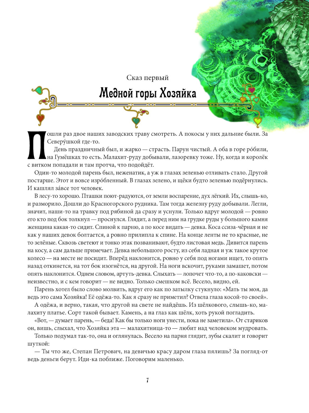 Сказы русского и советского писателя, уральского сказителя, талантливого обработчика народных преданий, легенд, уральских сказов Павла Петровича Бажова (1879-1950) впитали сюжетные мотивы, фантастические образы, колорит, язык народных преданий и народную мудрость. К сказовой форме повествования обращались как русские классики Н. В. Гоголь, Н. С. Лесков, В. И. Даль, так и современники Бажова: И. Э. Бабель, М. М. Зощенко, А. М. Ремизов, М. М. Пришвин и другие писатели. Проявив себя в этом жанре как самостоятельный художник, П. П. Бажов использовал знание уральского горняцкого быта и устного народного творчества для воплощения нравственных и этических идей. В настоящее издание вошли четыре наиболее популярных и самых известных произведения из впервые вышедшего в свет 28 января 1939 года сборника сказов «Малахитовая шкатулка»: «Медной горы Хозяйка», собственно «Малахитовая шкатулка», «Каменный цветок» и «Горный мастер» - с рисунками самобытной ростовской художницы Марины Валентиновны Ордынской.| Издательство | Фолиант |